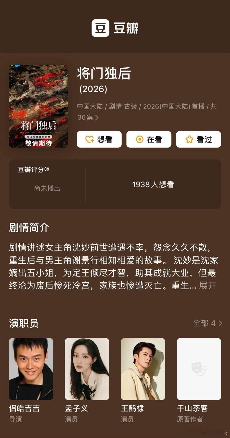 孟子义、王鹤棣对接都确认了新丽《将门独后》的饼,标准的女频女主视角bg剧。