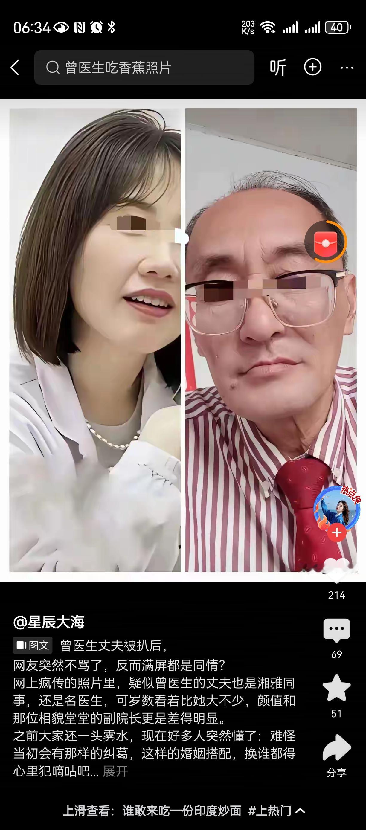 如果这老头真是曾医生的老公,那我赞成曾医生寻找真爱!年龄差距那么大的老夫少妻就应该想到有这一天!