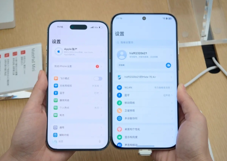 华为Mate 70 Air对比iPhone17 Air还是很有性价比的,不管是在续航还是在影像系统上都完全胜过iPhone 17Air ,价格却只有iPhone 17 Air的一半。如果让你选择,你会选择华为Mate 70 Air还是iPhone 17 Air?