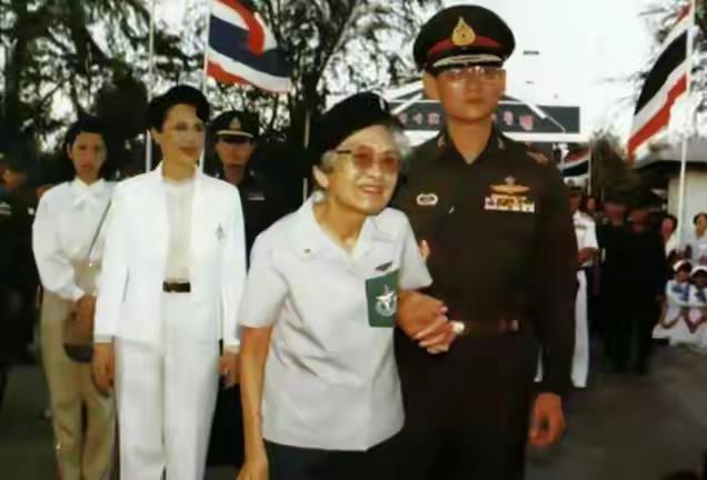 老国王和母亲手牵手,母慈子孝画面很美好。跟在他们后面的诗丽吉王后也有个孝子,那就是泰王。