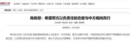 中国商务部4日批评荷兰政府没有展示出建设性态度和行动且升级全球供应链危机。 荷