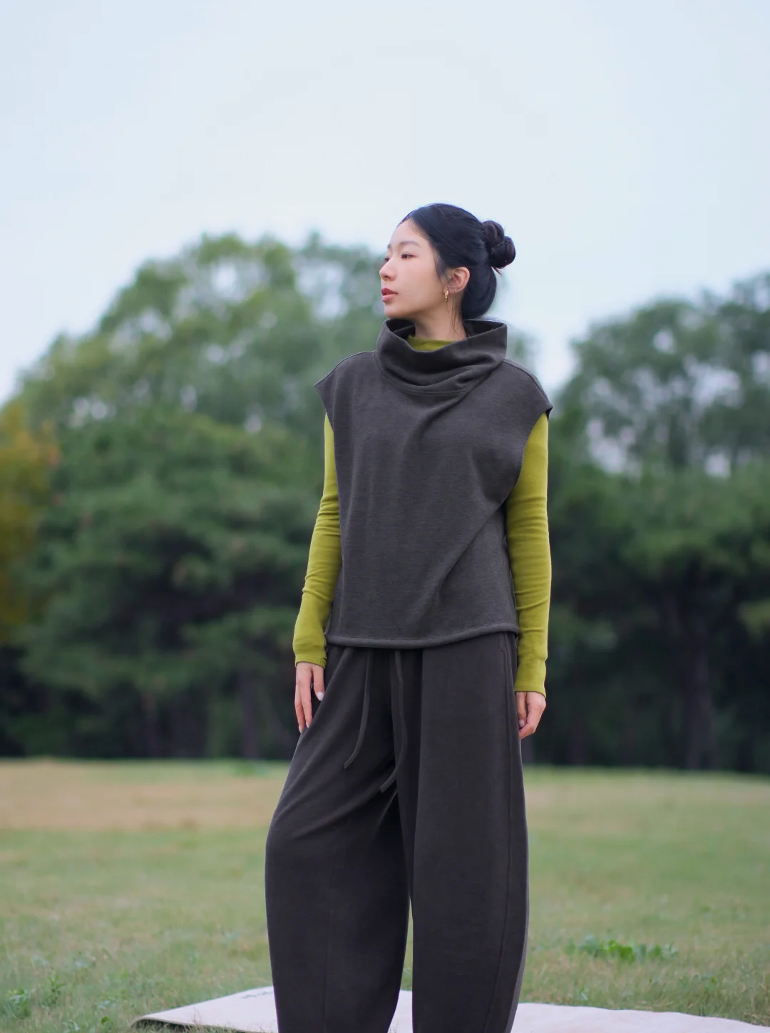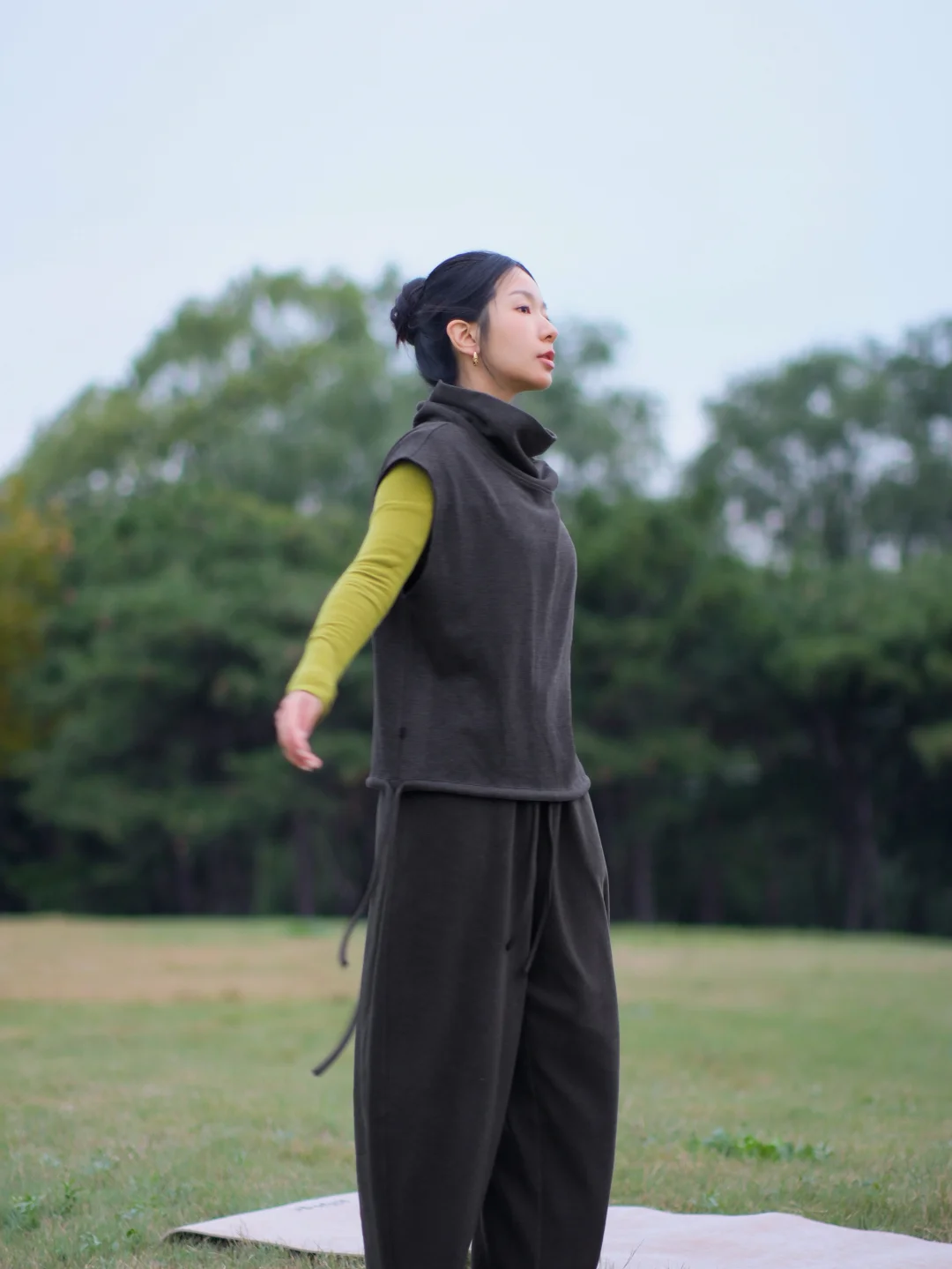 春捂秋冻 但不是真的秋天要冻 练习瑜伽也可以在秋冬穿的很暖和 加绒裤子 加绒打底和背心 身体暖暖的 从容自在发光