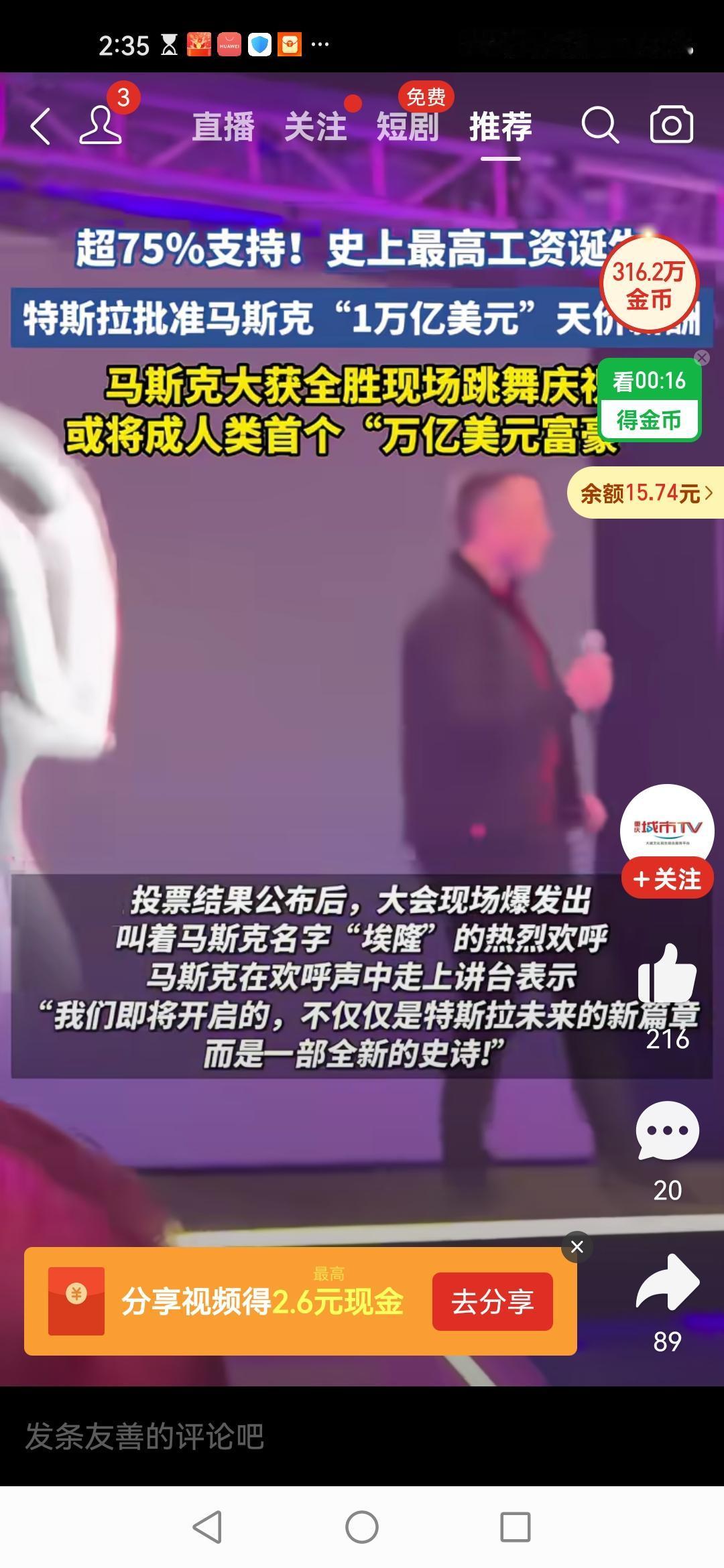 打工皇帝再次易主,薪酬更是创下记录! 特斯拉股东会以75%的赞成票通过了马斯克天价薪酬的议案。在达成目标后,马斯克将获得1万亿美元! 这恐怕比世界上大多数国家一年的GDP都高,如果是你,你想怎么花?