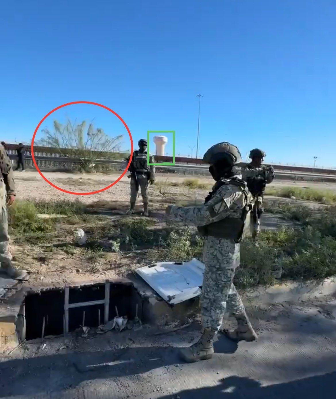 墨西哥军方调查边境疑似隧道 墨西哥军方和边境巡逻队人员在墨西哥华雷斯城和德克萨斯州埃尔帕索之间的墨西哥城广场旁,28号路标处,检查一条疑似隧道。 隧道入口被车门和水泥板封住。目前正在调查该隧道是否与美国领土相连。(31.7598951, -106.4441480)