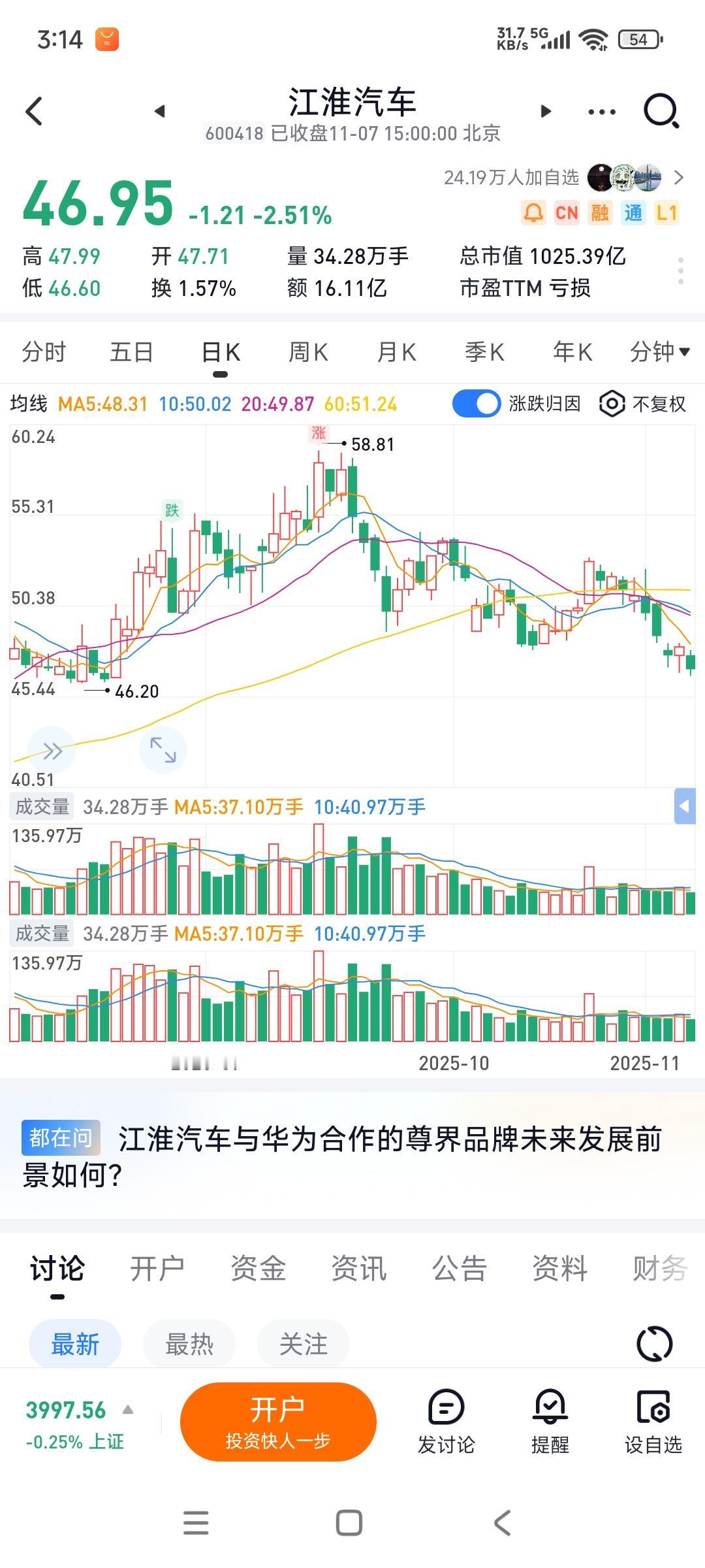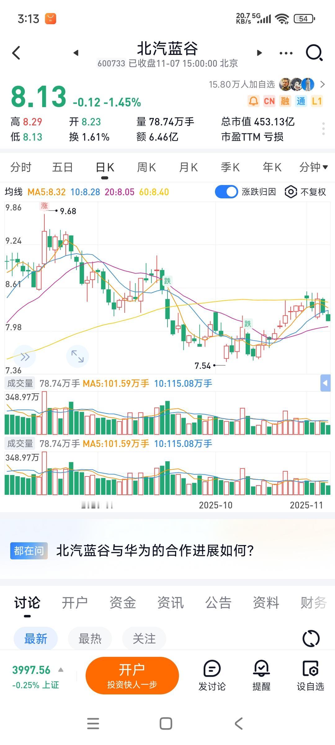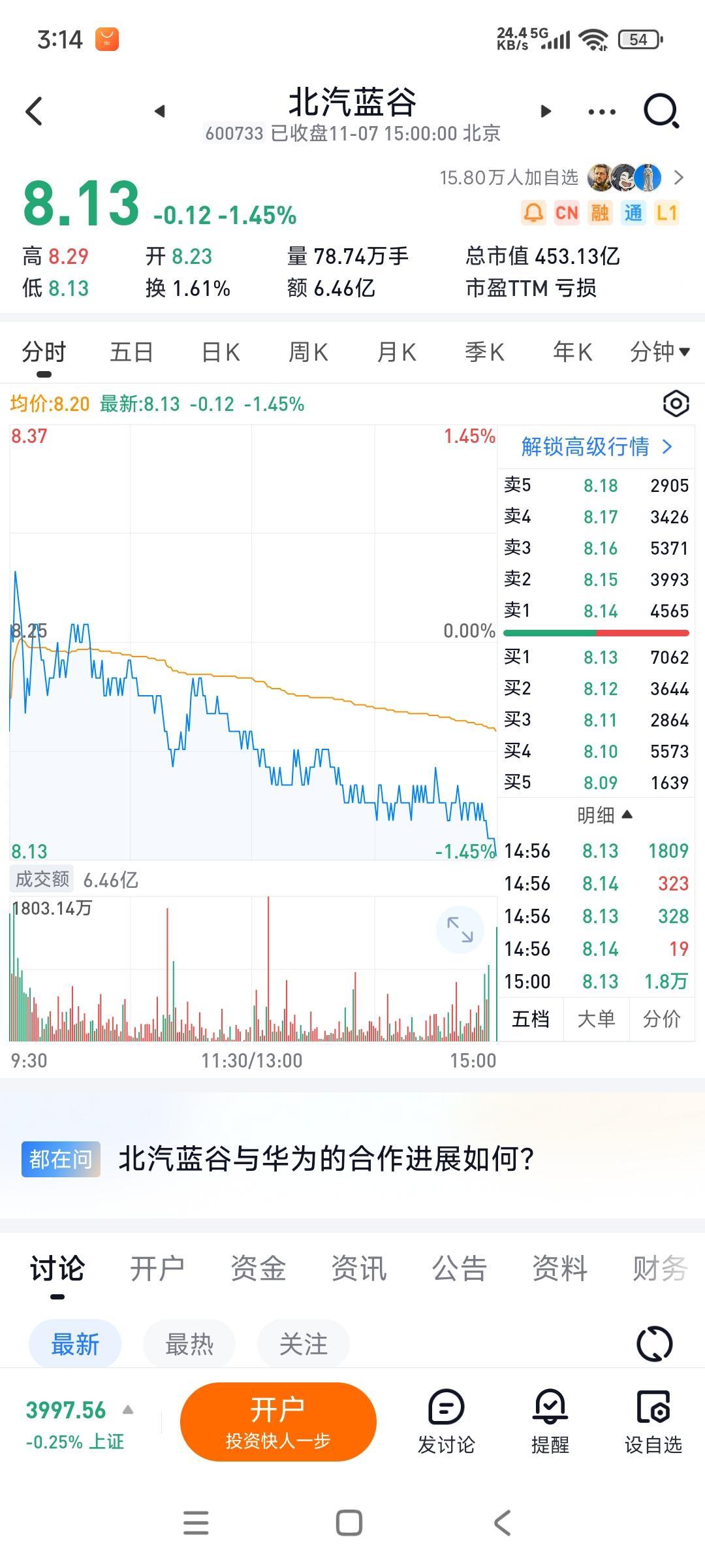 上午8.2挂单买入了20手北汽蓝谷,下午它的股价继续下跌,不过这两天下跌的量能都没有放大,所以不担心,如果它再跌到8块以内,继续加仓,加仓到20万市值就不动了... 其实,今天江淮汽车与赛力斯等“界”车都在下跌,尤其是赛力斯,又跌回到了140块以内... 北汽蓝谷这段时间比它们还是要好上不少的...北汽蓝谷现在的问题是产能跟不上,不是车子卖不出,但这个问题会慢慢得到解决的! 投资都是反人性的,8块上下的北汽都不要,今后9块,10块时难道再冲进来?[捂脸]