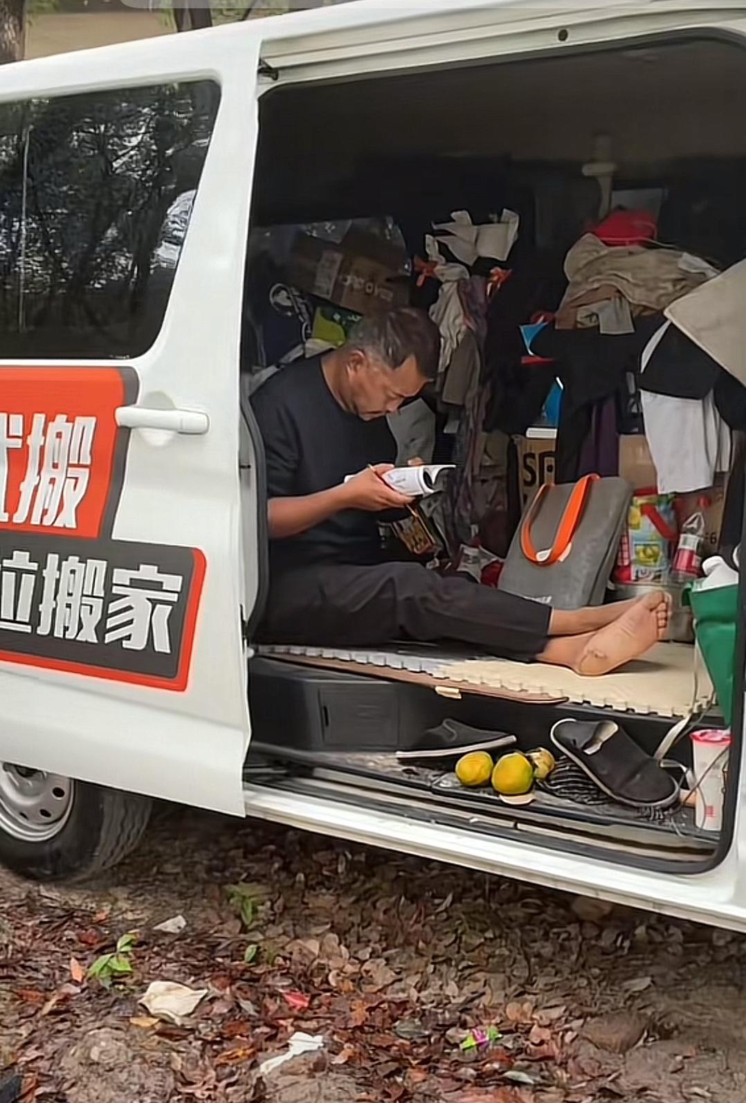 沈巍自掏2万,借7万买的货拉拉车,现在已经成为他的一个家了。 因为退房了,又暂时没有找到合适的房子,沈巍把很多东西堆放在车里面,只留一个人可以睡下的地方。 最近,沈巍这辆车还是停放在上海白鹤附近,小邓去上班了,已经很久没有人开了。沈巍把它当成临时住所,白天坐主播的车去外面逛,晚上不管多晚,都要回到这辆货拉拉车上睡觉。