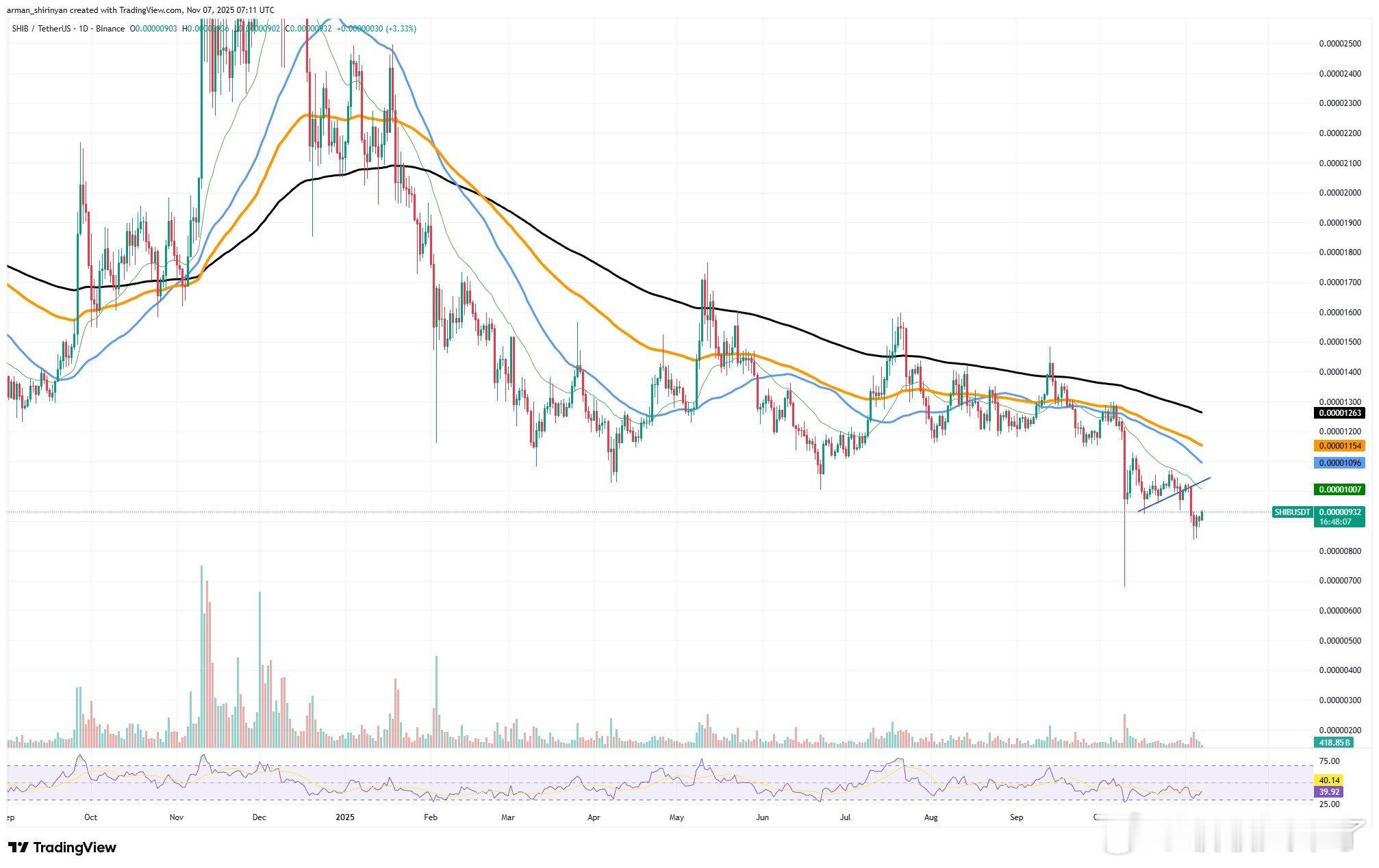 柴犬 SHIB 再次守住关键支撑位,股价跌破0.0000090后回升至0.0000093附近。历史显示,这一区间常吸引买盘,但当前市场受宏观不确定性和流动性下降影响,仍处于看跌阶段,RSI在40左右,短期反弹需谨慎。区块链山寨币行情分析
