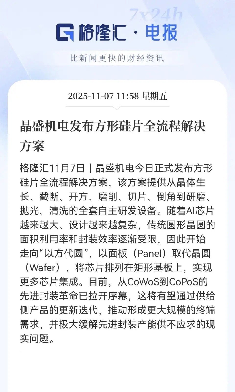 晶盛机电这回放了个大招!直接甩出一套方形硅片全流程方案,从硅料到成品全套设备自己全包了!