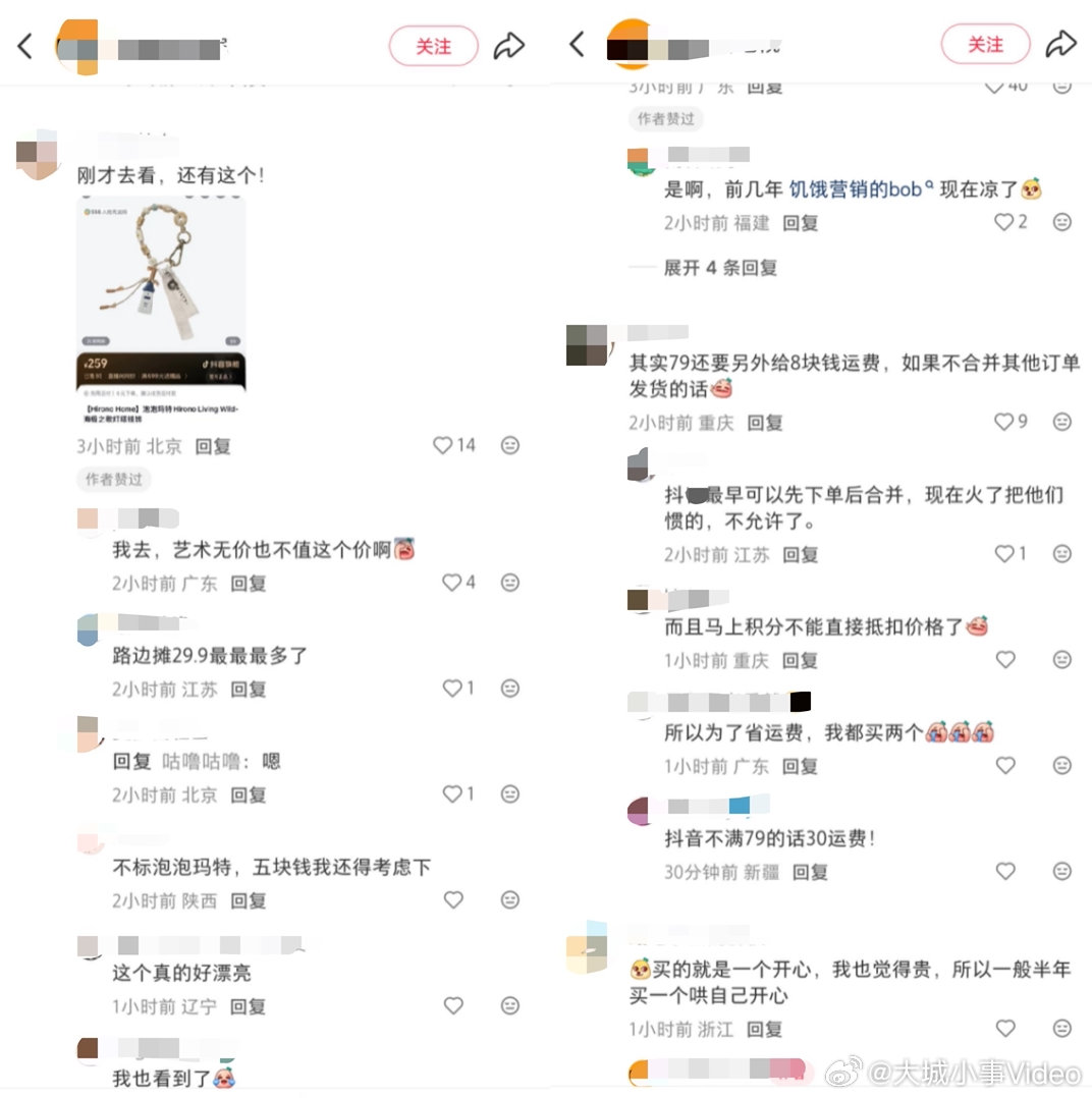 有网友指出,泡泡玛特挂链卖79元还不包邮。还有网友吐槽泡泡玛特周边贵,就挂饰方面,“Hirono Living Wild-海极之歌灯塔挂饰”一条标价259元,“SKULLPANDA餐桌系列多功能挂饰组合”标价159元一条。“一直不明白卖那么贵干嘛?材料也不值那个钱”。