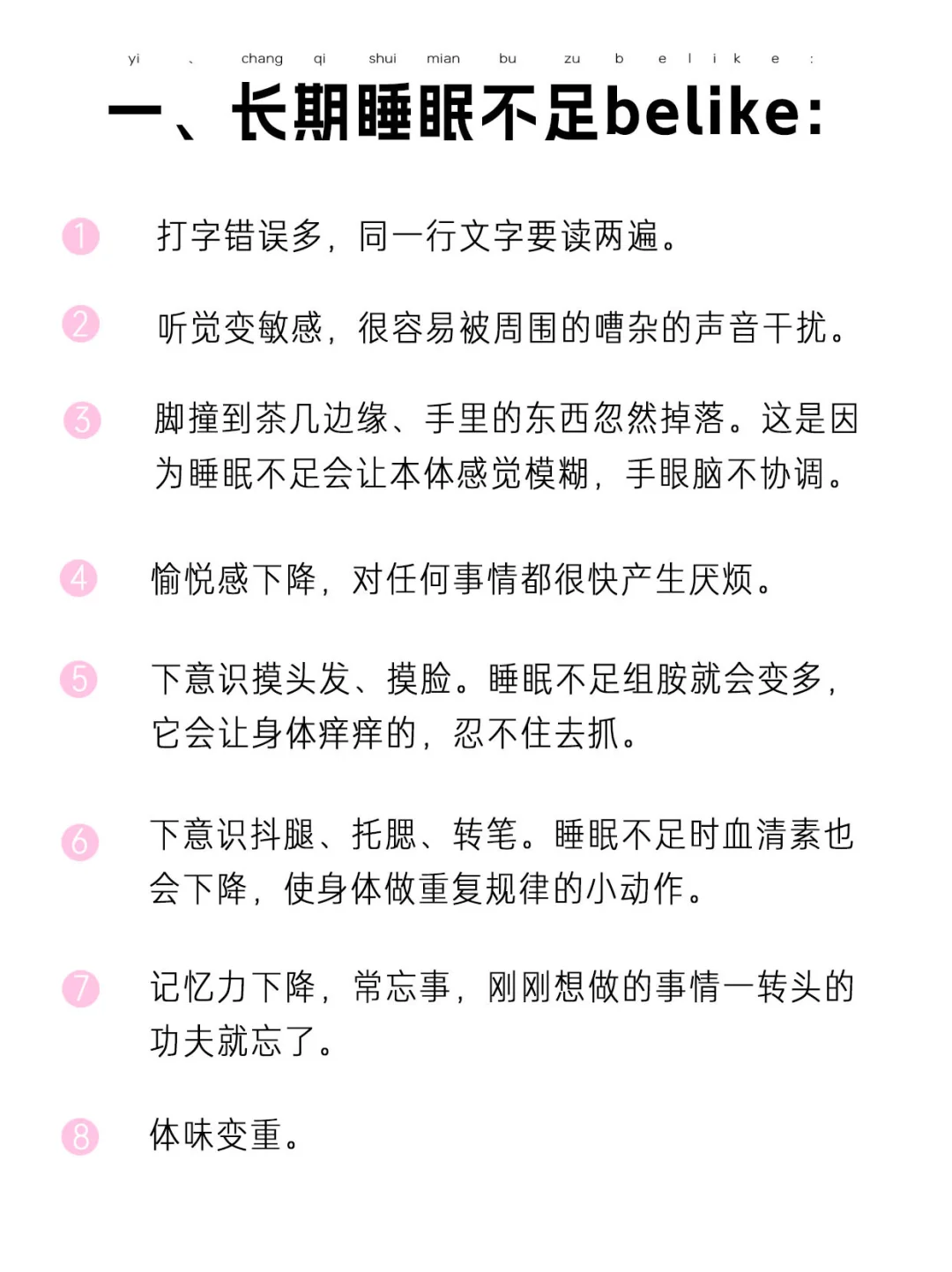 长期熬夜会让人变迟钝 比如不小心磕到腿,手里的东西容易掉落 下意识摸头发摸脸 对生活的感受力下降,对任何事情都容易产生厌烦 还有常忘事,刚刚想做的事一转头就忘了……等等 这长期8个睡眠不足的表现你占了几个?[睡觉R]