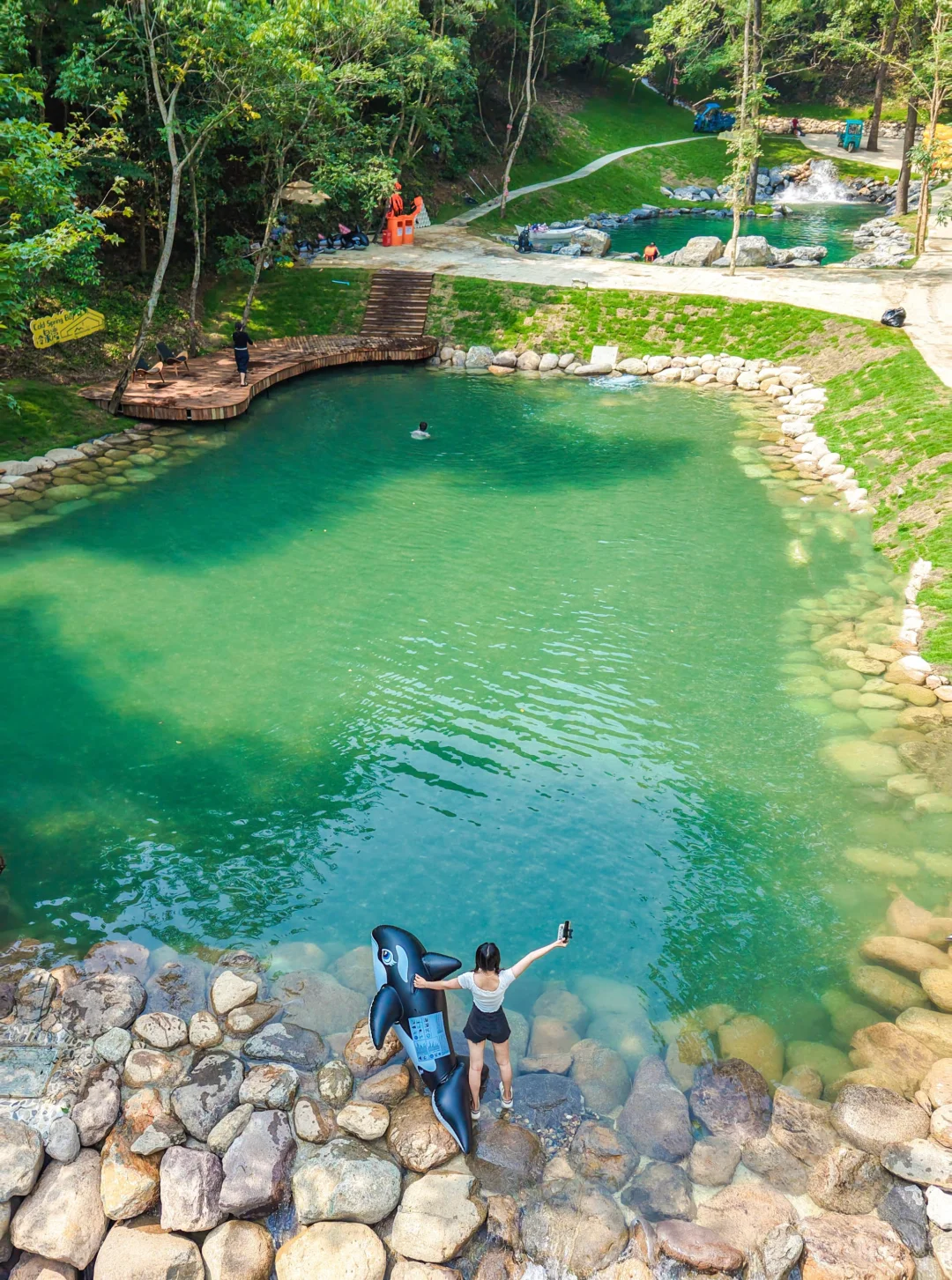 这里的冷泉湾超出我的想象,全是生态玻璃水,水质清澈透明,触碰到就感觉冰冰凉凉,整个区域树荫掩映,天然阴凉防晒,玩水无束缚!