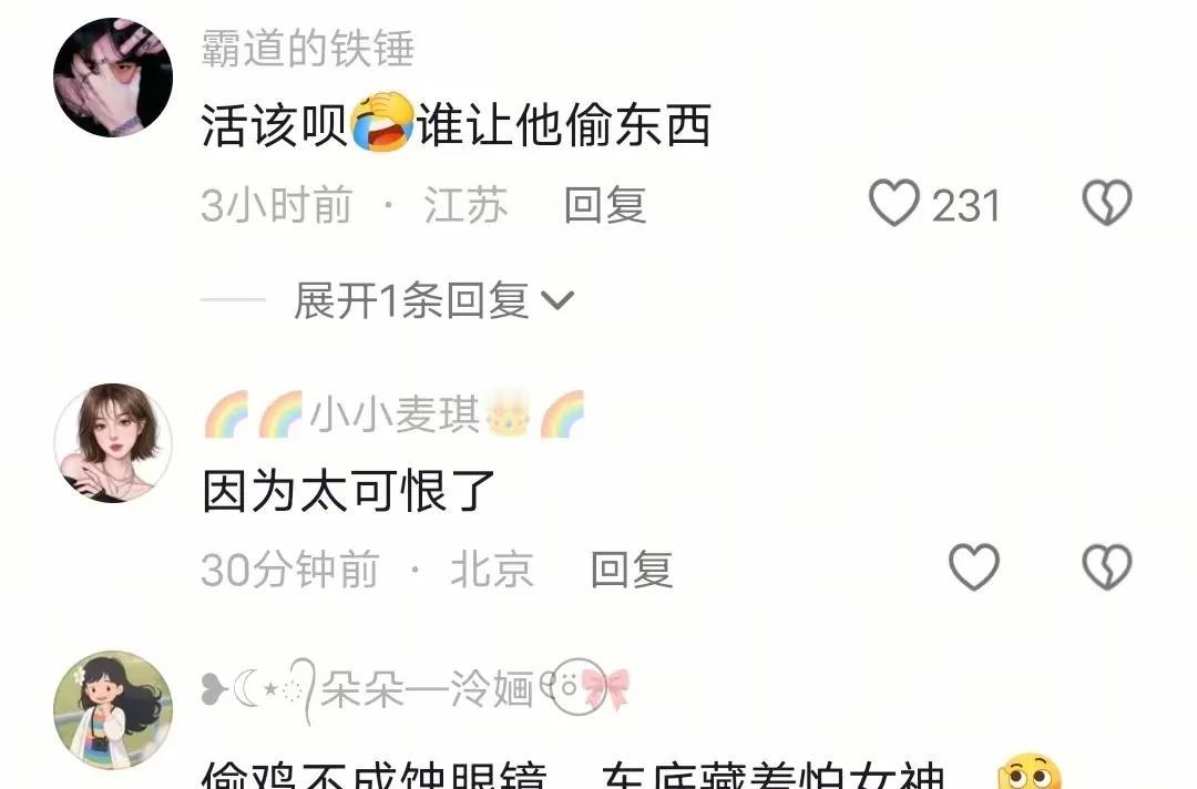 山西小偷被女生暴打30分钟,躲车底不敢出来 提起小偷,大家都恨得牙痒痒😤!但真遇上时,敢当街动手的却没几个。然而在山西某街头,一名小偷这回可真是“撞上铁板”了——他偷了一位女生的手机,结果被对方当街暴揍整整30分钟‼️ 最后只能狼狈躲进车底,直到警察来了才敢爬出来…… 事情发生在傍晚时分,女生小陈正和闺蜜们开心逛街👭。下班高峰,人来人往,谁也没注意到一个戴眼镜的男子悄悄跟在了小陈身后。机警的小陈很快就察觉不对劲,但她没有打草惊蛇,一边继续和闺蜜说笑,一边暗中观察。 果然!就在十字路口等红灯的拥挤时刻,小陈感觉口袋一动——一只手正伸进来!她立马去抓,但手机已经被顺走了📱!一回头,那名“眼镜男”正鬼鬼祟祟想溜。 “小偷别跑!”小陈一声大喊🔊,小偷拔腿就跑!幸好路上人多,他没跑几步就被小陈一把拽住衣服,再补上一脚,直接撂倒在地💥! 接下来,就是一段“单方面碾压”的场面——小陈对着小偷就是一顿暴雨般的巴掌🙂👋!小偷大概是从没遇到过这么“能打”的失主,根本不敢还手,只能抱头躲闪。可小陈越打越气,越气越狠,硬是把小偷揍得鼻青脸肿。 中途小偷试图爬起来逃跑,结果被小陈一拳击中脸部,连眼镜片都飞了一片👓💔!整整30分钟,他在地上连滚带爬,就是逃不出“女侠”的掌控范围。 最后,小偷实在扛不住了,瞅准路边停着一排车,一个翻滚钻进了车底🛞……任路人怎么劝,他就是不肯出来,仿佛车底才是全世界最安全的地方。 直到警察赶到现场👮,向他保证“出来不会被打”,小偷才哆哆嗦嗦爬出来,还跪在地上摸找他那片失踪的镜片……场面既滑稽又解气! 视频上传后,网友全都笑疯了😂:“第一次见小偷被警察‘救’走!”“高度近视就别干这行了,眼镜掉了连逃命都看不清路!”“这哪是小偷?这是挨揍体验卡到期了吧!” 不过笑归笑,这件事也提醒我们:坏人并不可怕,只要勇敢站出来,他们就不敢嚣张!💪 你怎么看这次“女侠揍小偷”的事件?欢迎在评论区聊一聊~👇