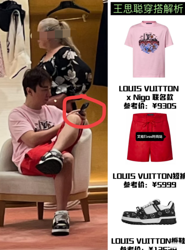 这不,又有网友在新加坡的金沙偶遇,他正穿着近万元的粉色T裇,以及6千的红色短裤,坐在货架旁的沙发上,专注着刷手机,另一边则有3个美女,正在反复挑选着衣服!