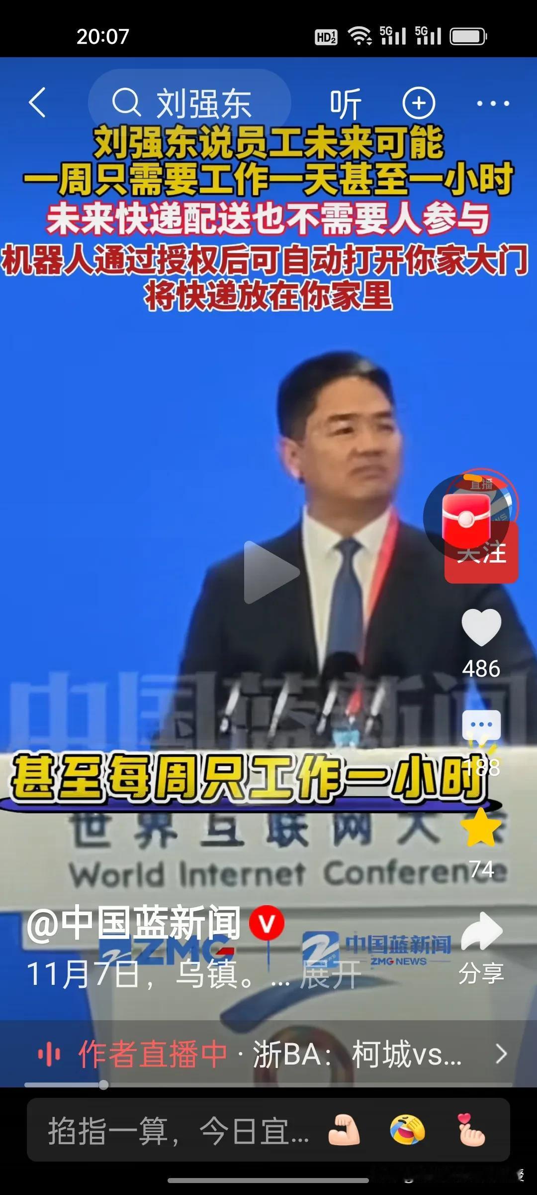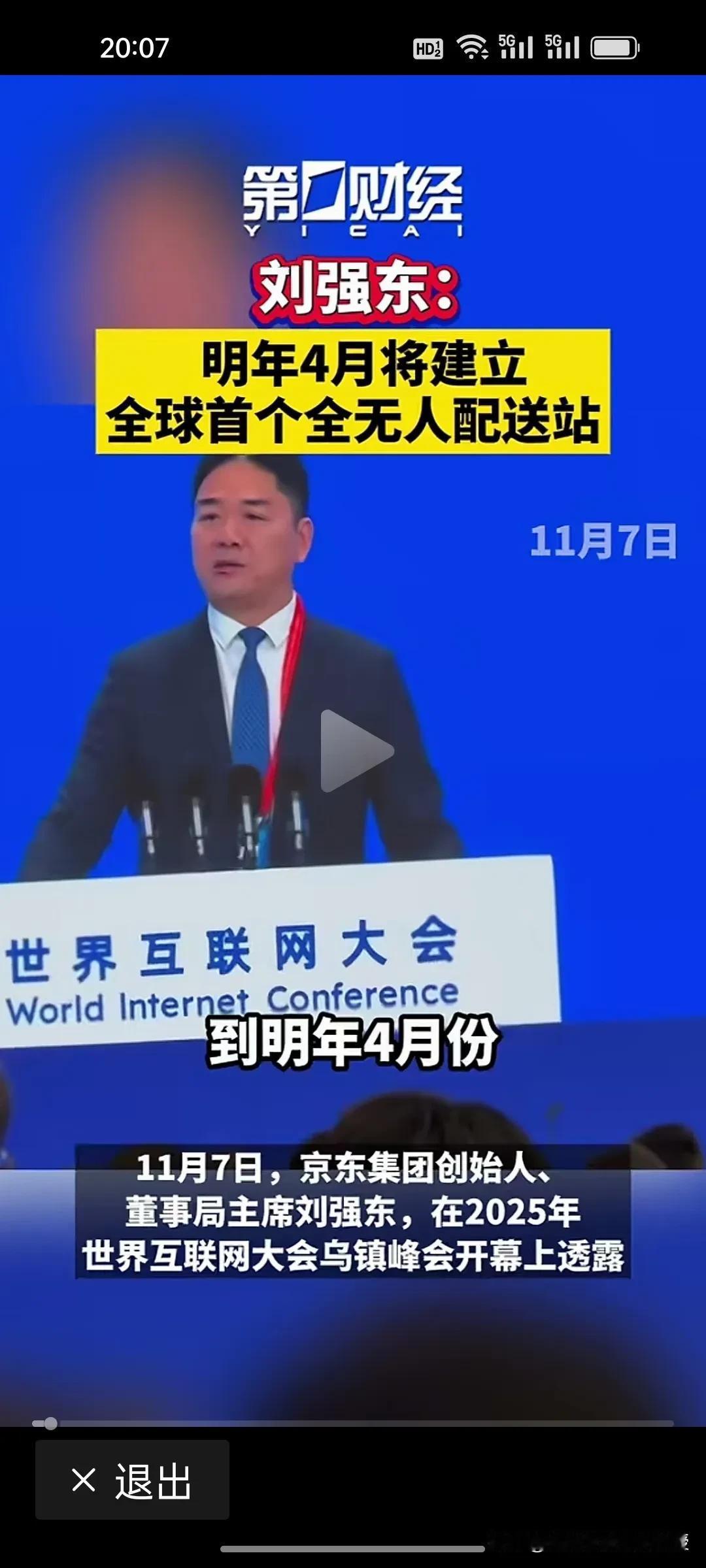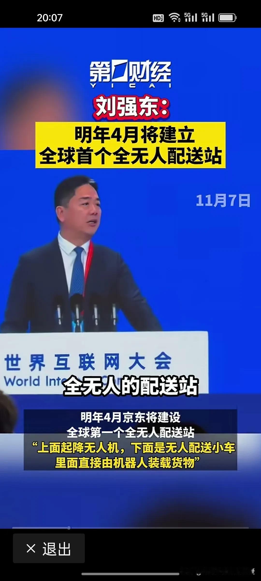 刘强东这次是八年磨一剑,在乌镇互联网大会上一鸣惊人!今天,刘强东说了京东两个大突破!第一,明年四月份将建全球首个全无人配送站,第二,员工未来一周只需要工作一天甚至一小时,快递配送完全可以让机器人送到你家里。这才是真正的共同富裕!把技术红利变成兄弟们的福利,刘强东说到做到,格局确实非常大!