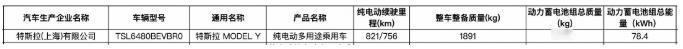 日前,汽节车社从工信部获取到了特斯拉Model Y新车型的电池及续航信息。 作为新版本车型,该车搭载容量为78.4千瓦时三元锂电池组,工信部续航里程最高为821公里(测试工况未知),预计未来将作为“长续航后轮驱动版”推出。 作为参考,目前在售的特斯拉Model Y提供后轮驱动版和长续航全轮驱动版车型,指导价分别为26.35万元和31.35万元,工信部续航里程最高为750公里(CLTC工况)。 最新申报信息显示,特斯拉Model Y新车型将搭载容量为78.4千瓦时三元锂电池组,由LG提供,与在售长续航全轮驱动版车型一致。但新车型提供756公里和821公里两种工信部续航里程(测试工况未知),高于长续航全轮驱动版(719公里/750公里)。 特斯拉Model Y新车型外观造型基本不变,长宽高分别为4797/1920/1624毫米,轴距为2890毫米,另外,新车型整备质量为1891公斤,相比在售后轮驱动版减重30公斤。 特斯拉Model Y新车型搭载最大功率225千瓦的单电机,相比在售后轮驱动版最大功率提升5千瓦。 点个关注吧!汽节车社,车圈热点资讯每日一扫清!【来自懂车帝车友圈】