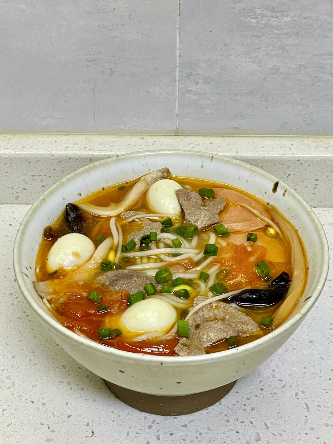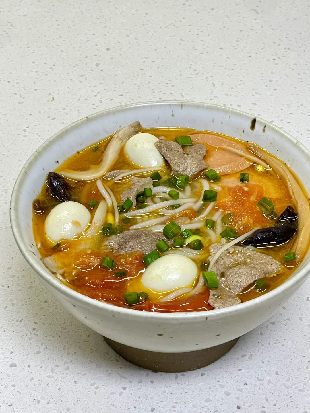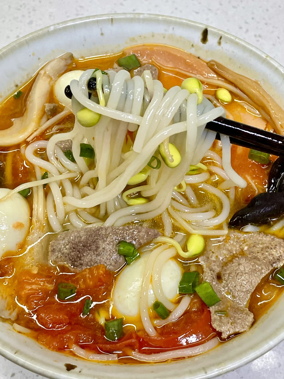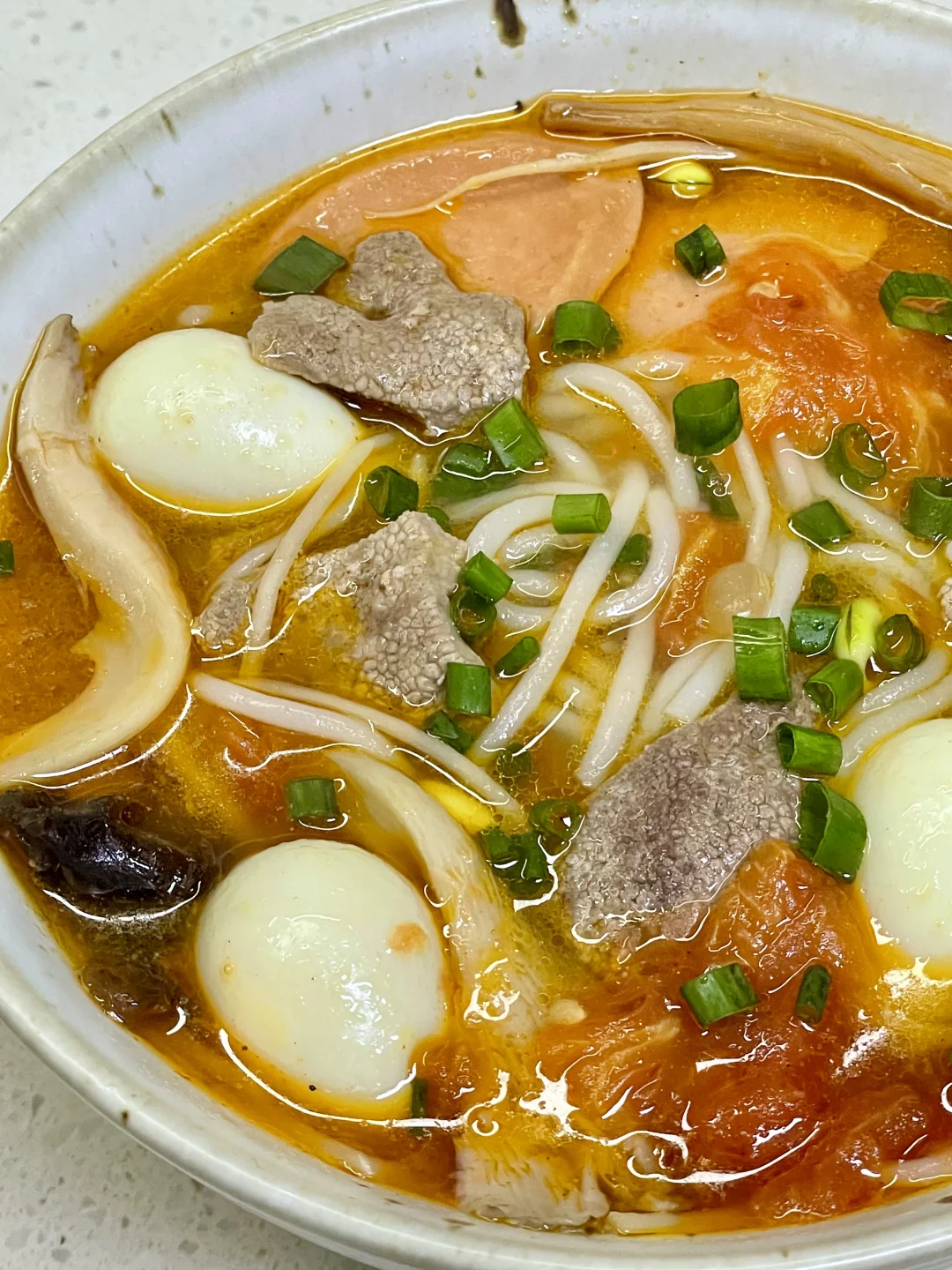 三鲜米线也太美味了吧,天冷了来上一碗暖乎乎,汤汁都可以喝完[自拍R] 1⃣️:猪肝切薄片,加入少许盐和淀粉抓匀(不喜欢吃猪肝的可以换成瘦肉)锅中油热倒入姜末炒香,倒入二分之一番茄炒软,倒入适量开水,加盐 胡椒粉 鸡精调味 2⃣️:放入黄花 木耳 平菇 豆芽煮软,再放入米线煮2分钟,放入鹌鹑蛋 火腿肠 剩下的番茄继续煮几分钟 3⃣️:转小火放入猪肝煮定型,再转中火煮半分钟,关火加入葱花即可