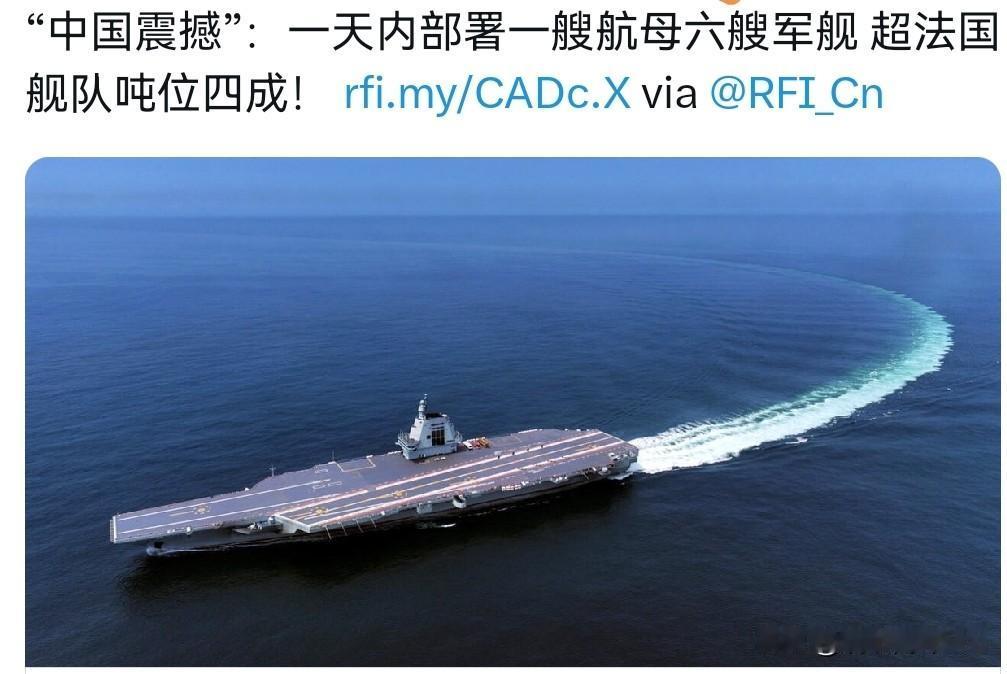 看见我们的福建舰入列,法国媒体羡慕的流口水!11月7日,根据法国费加罗报报道,法媒称,福建舰的入列堪称中国震撼。中国在一天内竟然部署了 17 万吨新军舰入海,相当于法国海军总吨位(略多于 40 万吨)的 42%。法媒表示,今天入列的军舰不止一艘福建舰,而这事实上一艘 903A 型补给油船、一艘 075 型两栖攻击舰、一艘 055 型驱逐舰、两艘 052D 型驱逐舰以及一艘远洋侦察舰。 法媒表示,在过去十年中,中国的造船厂已经改变了全球海军的力量平衡。自第二次世界大战中的美国海军以来,还没有一支舰队以如此惊人的速度发展。最新服役的“福建号”完美展示了中国工程师的适应能力和学习速度。而中国使用的电磁弹射技术,法国目前甚至尚未掌握这项技术,而不得不向通用原子公司购买。法媒认为,在海上,中美之间的较量确实正在趋于平衡。 说实话,看见我们的福建舰入列,一贯对我们非常偏见,挑剔的法国媒体,竟然以大篇幅进行正面报道,这确实让人感到非常的意外。从法媒的报道,看得出来,法媒的羡慕之情溢于言表。而其羡慕我们的地方最起码有三点。其一,那就是羡慕中国惊人的造舰能力,一次下水法国海军总吨位的42%,这无疑让法媒很震惊。 其二是,法媒羡慕我们的技术,尤其是电磁弹射技术。其三是,法媒羡慕我们制造军舰的人才队伍,所展现的强大科研实力。当然,以中法海军进行比较,法媒确实有羡慕的理由。事实上,不管是航母吨位,舰载机性能,护卫舰的火力配置等等,我们都远远超过了法国。但,对于我们而言,这不会是我们造舰的终点。相比于美国的海上力量,不得不承认,我们仍有差距。比如,我们还没有核动力航母,我们的核潜艇性能也还没有追上美国。