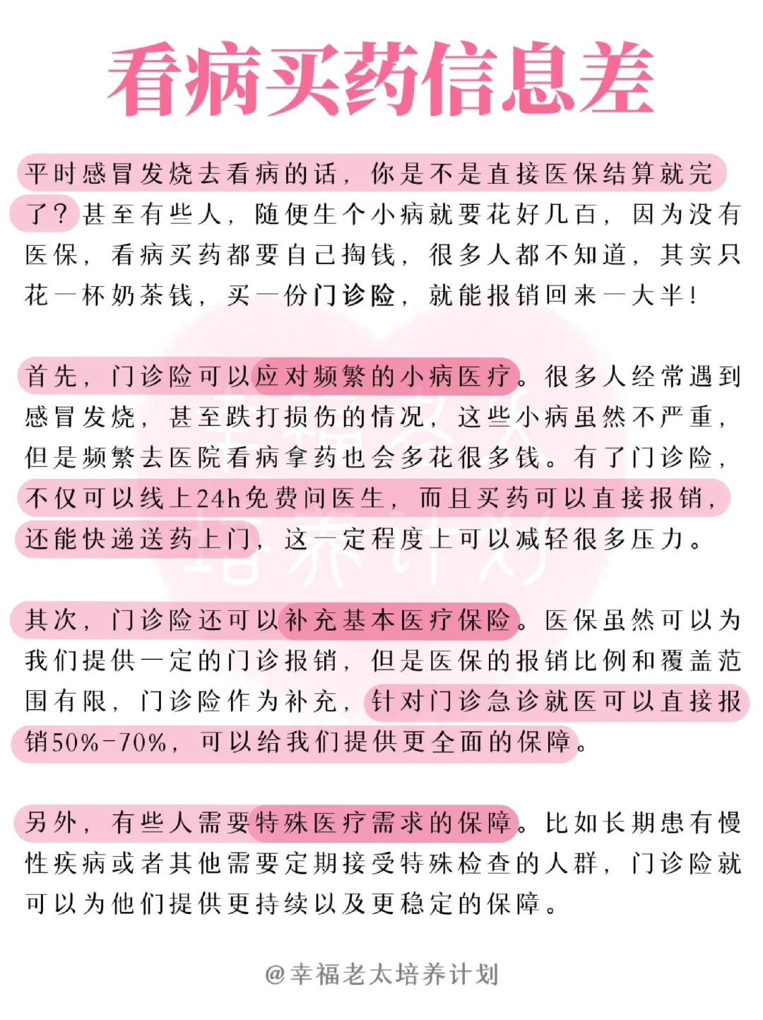 平时感冒发烧😷去看病的话,你是不是直接医保结算就完了😅甚至还有些人,随便生个小病就要花好几百😱因为没有医保😭看病买药都要自己掏钱💰其实很多人都不知道,其实只花一杯奶茶钱🥤买一份门诊险🉑就能报销回来一大半❗