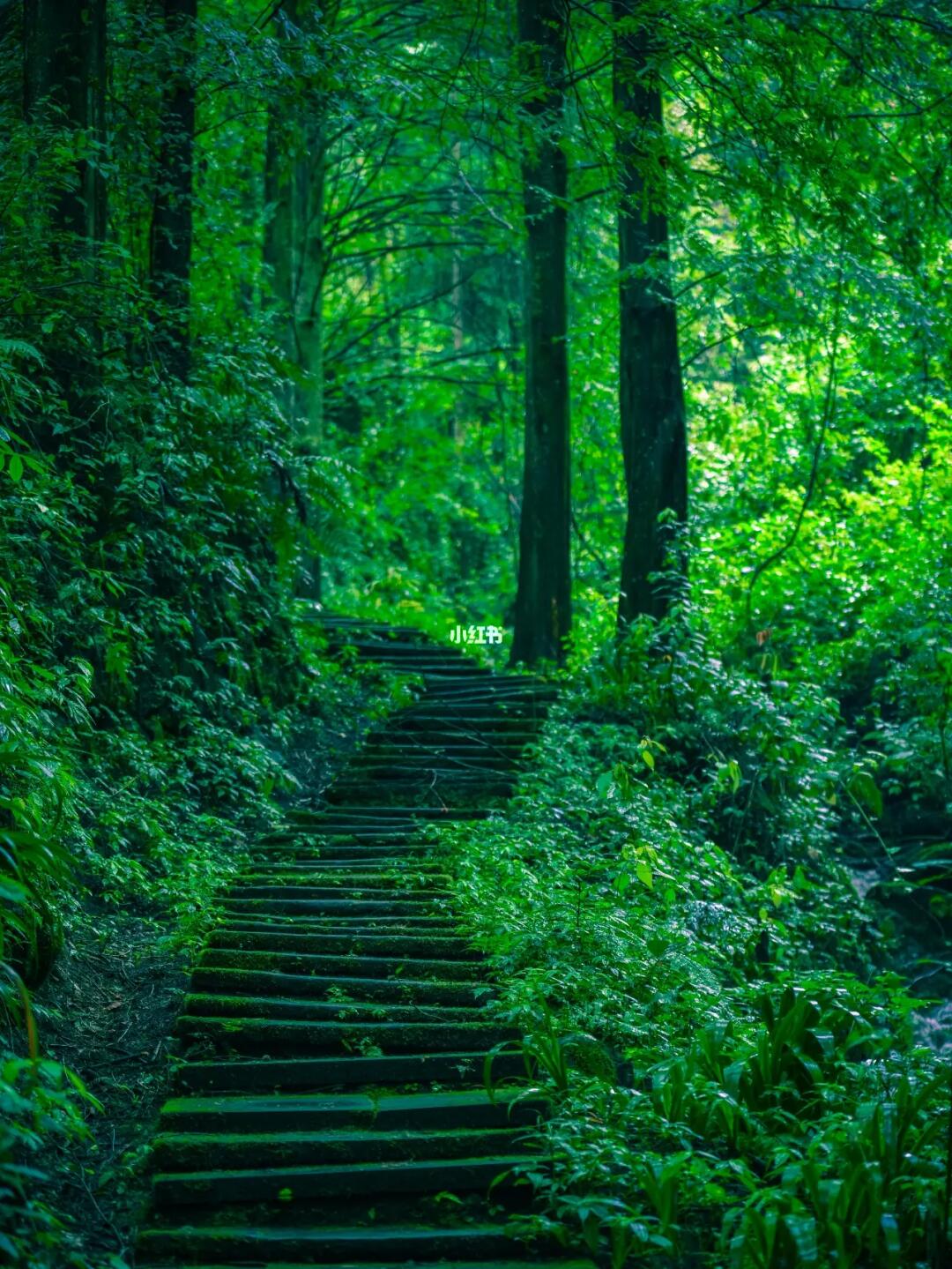 1⃣登山道以青石台阶为主,沿途树木参天,沿石梯而上,曲径通幽,仿佛进入了一个绿野仙踪的世界