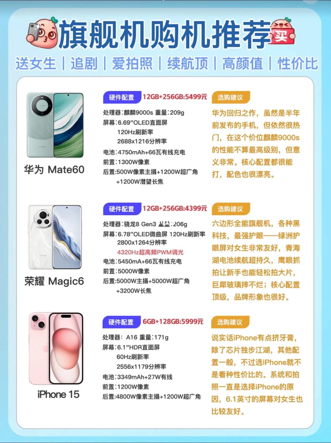 颜值高,拍照好,续航久基本上就已经满足大部分女生的需求了,如果是你,以上机型你会怎么选呢❓