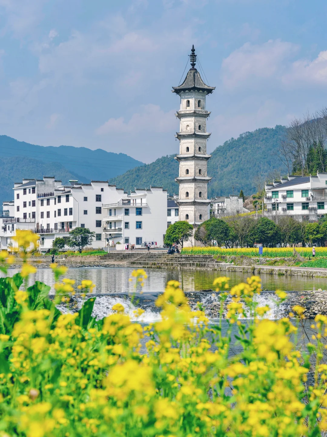 📍凤山村✔望向龙天塔,看百年古塔与油菜花田相映下超级美