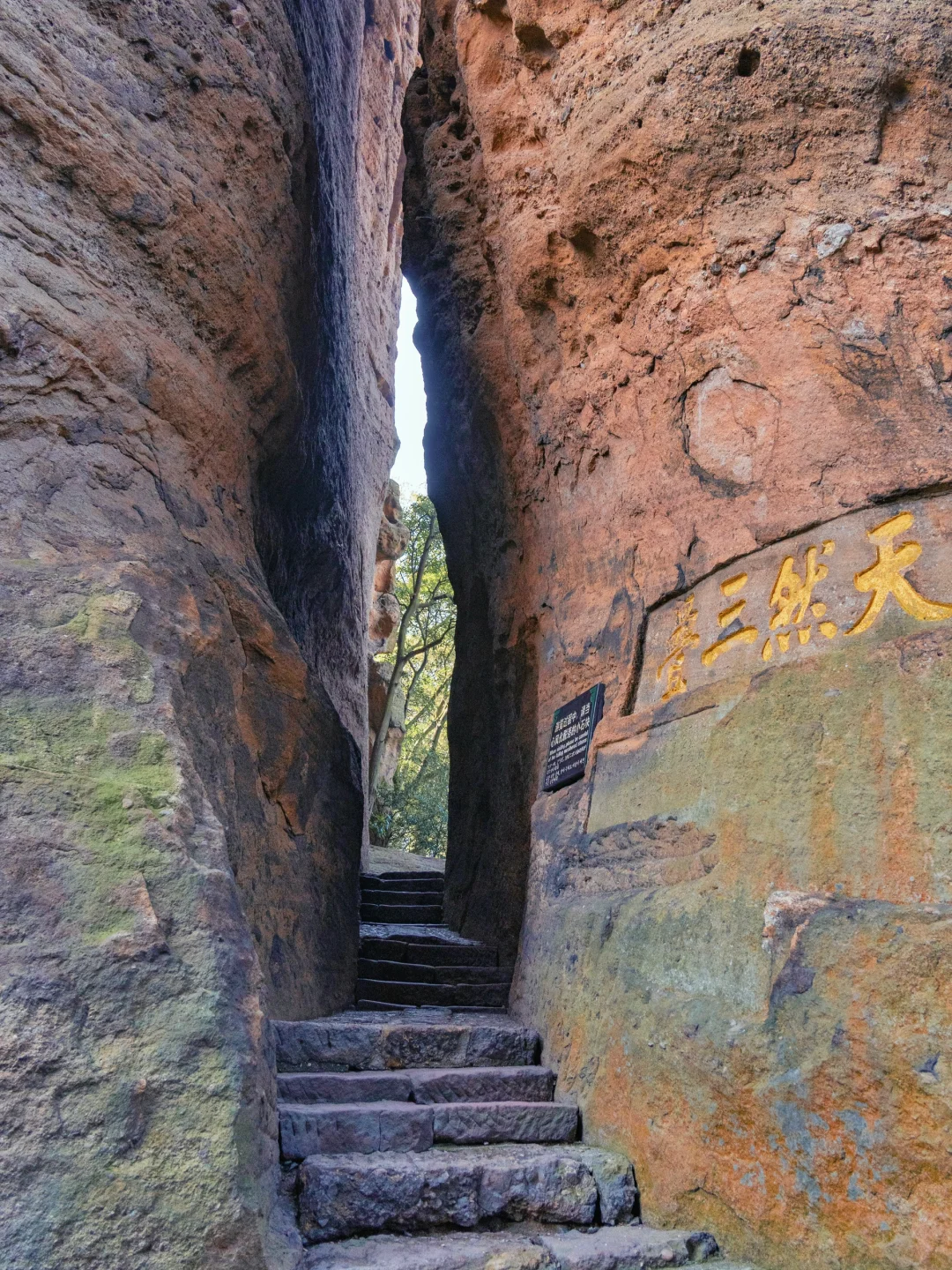 📍一线天✔龟峰和卧牛峰相连而成,穿越峡道可仰望峰顶奇观