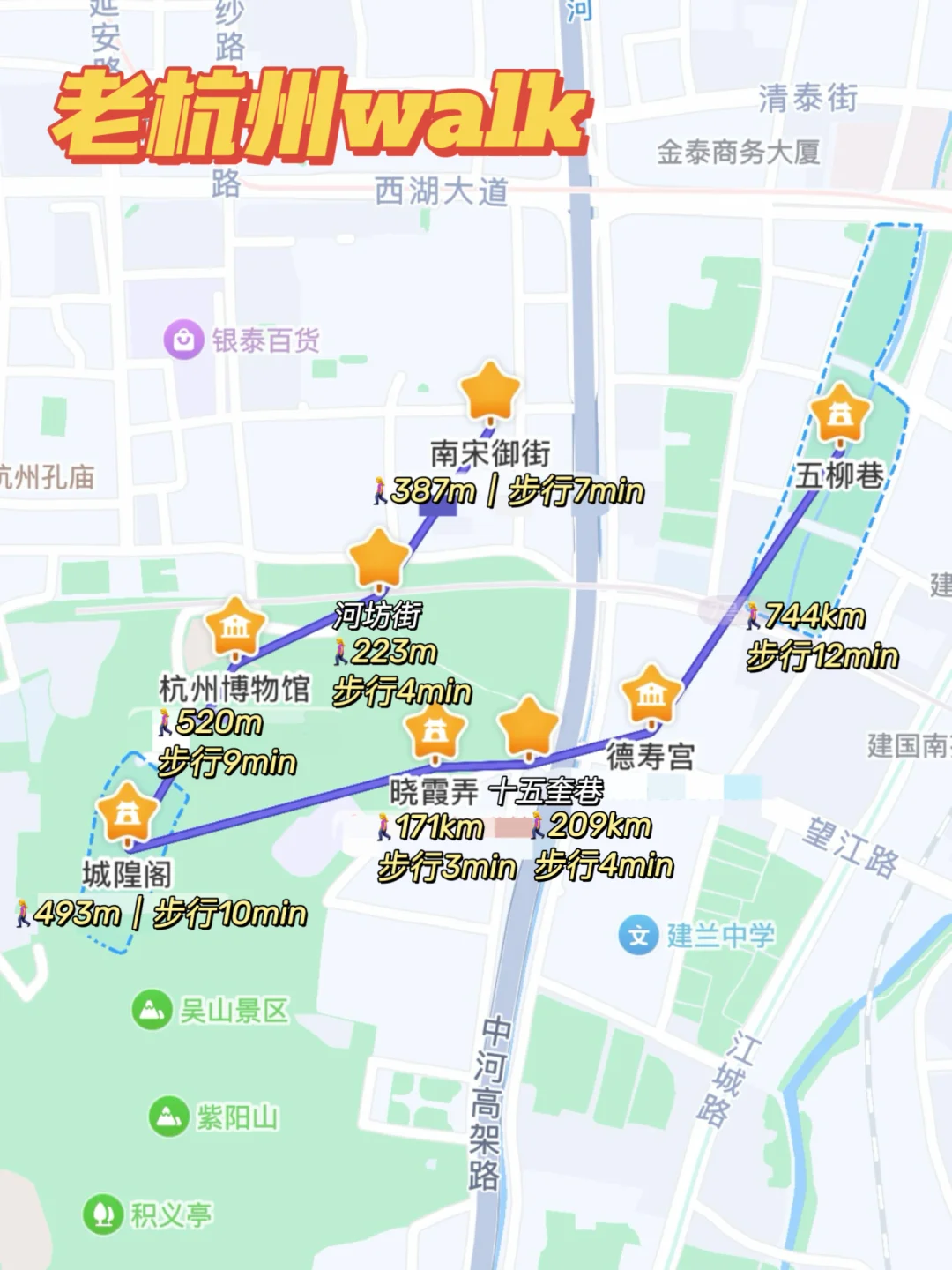 🗺路线:五柳巷—德寿宫—十五奎巷—晓霞弄—城隍阁—杭州博物馆—河坊街—南宋御街