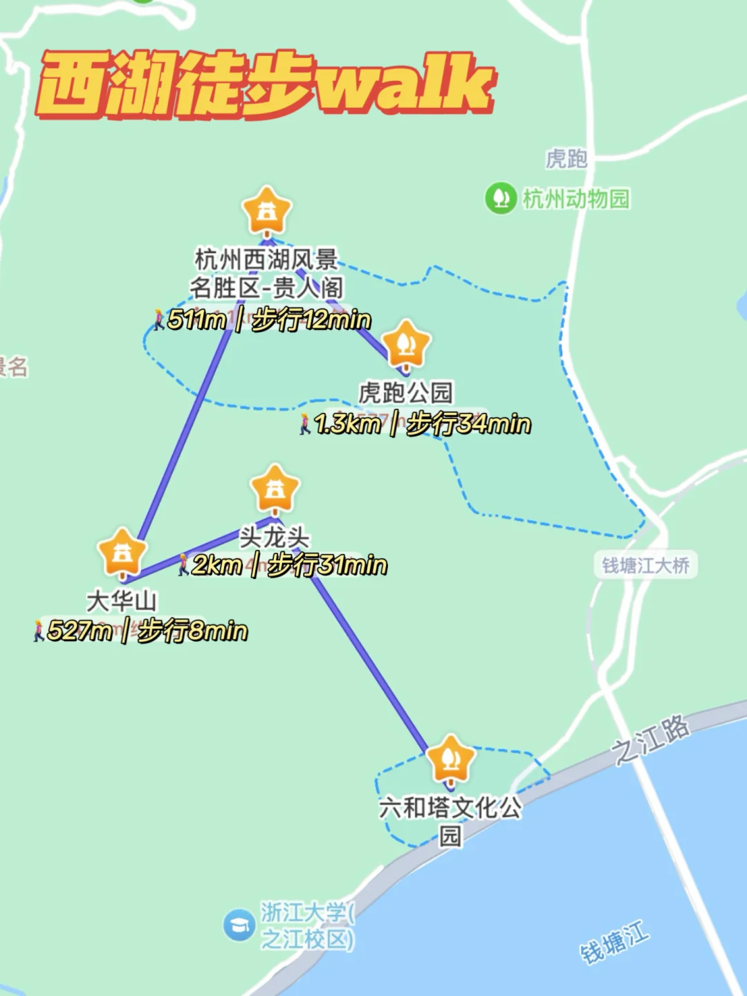 🗺路线:六和塔—头龙头—大华山—贵人阁—虎跑公园