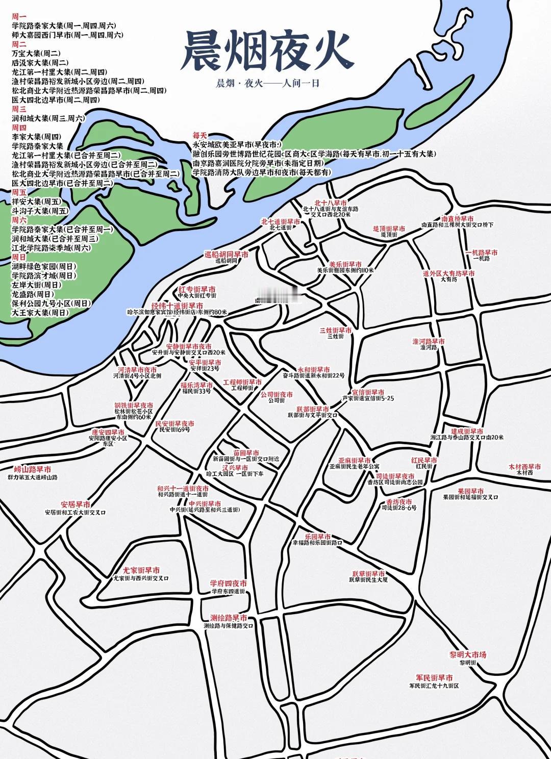哈尔滨43处早市部分带夜市晨烟夜火人间一日 昨天看到有大佬 @小红薯64783DCA 分享的43处早市,太全面了,今天用手绘地图标出大概位置,欢迎来哈尔滨玩的朋友体验人间烟火。哈尔滨 东北早市的烟火气 地图 适合居住的城市 哈尔滨早市 哈尔滨夜市 @小红薯64783DCA [作揖]感谢。