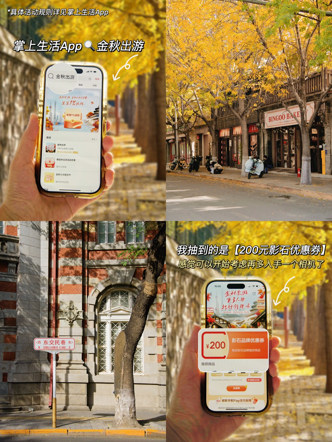 推荐二环/三环内,离地铁口越近越好!天安门/故宫/什刹海/南锣鼓巷/王府井附近,吃喝玩乐都方便!众所周知来北京旅游,住宿费用占大头!太远不方便,太近价格高,很难抉择!招商银行信用卡真的很贴心!不仅如期推出「金秋出游」活动,更是准备了「酒店优惠券」等礼遇!给新老用户减轻旅途负担,默默给足了底气!