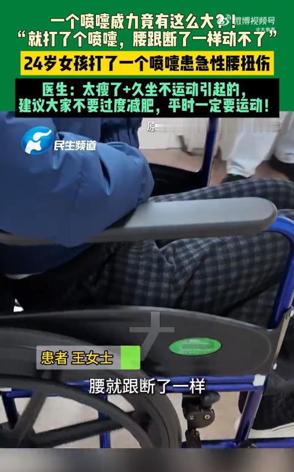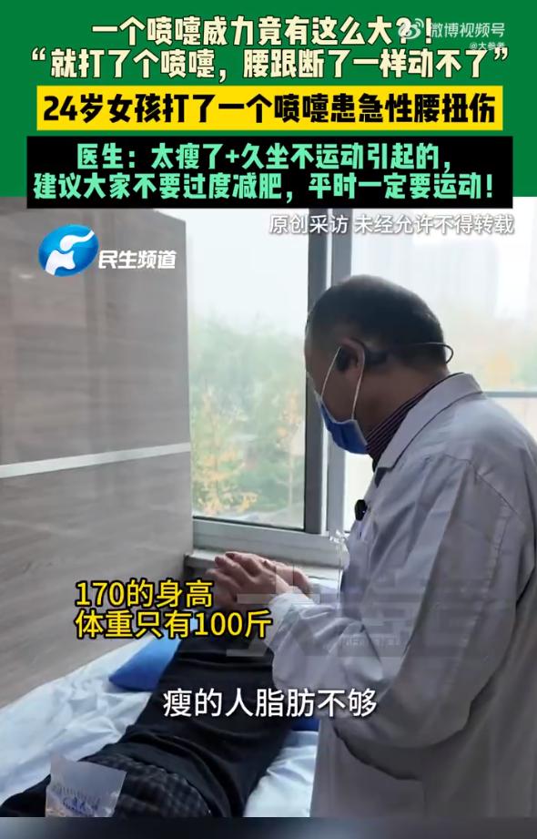 “打个喷嚏闪了腰!”11月7日报道,河南郑州,一位24岁女生在办公室一个喷嚏后腰