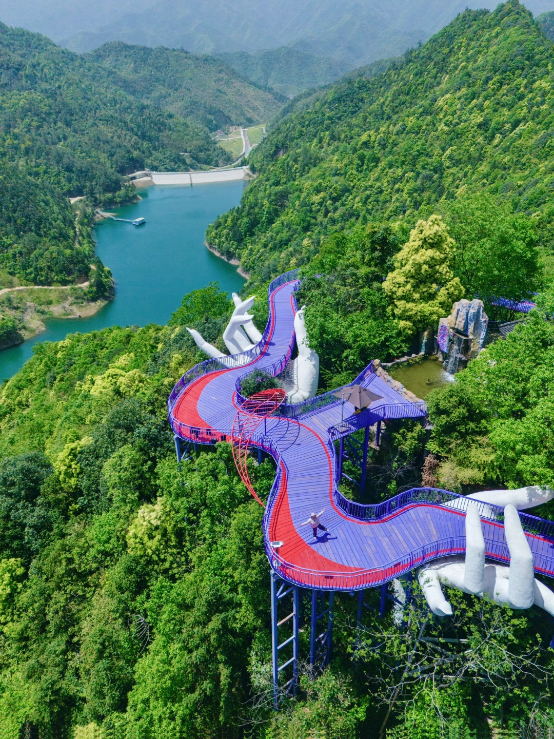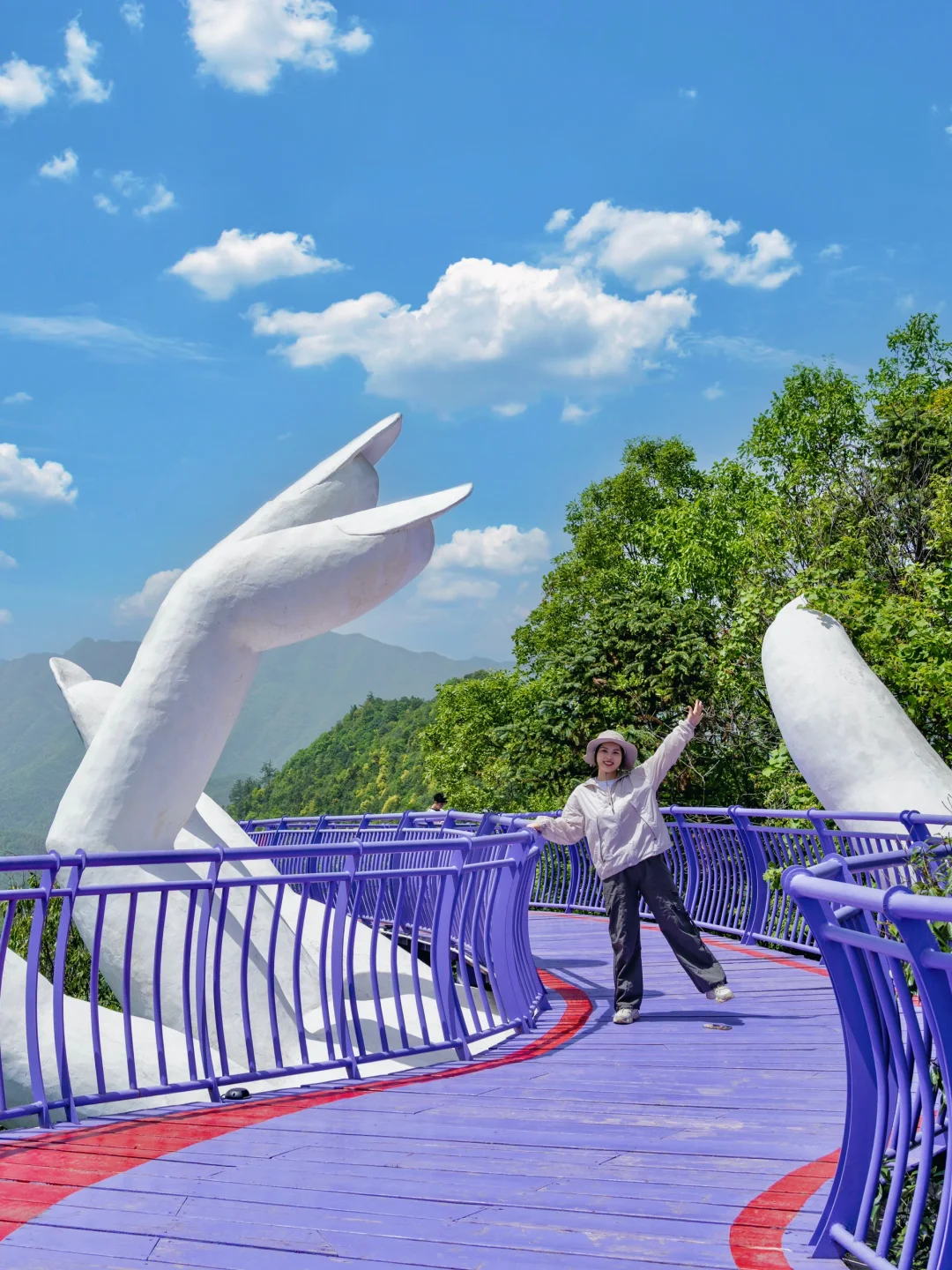 📍紫绫纤手✔️穿行在被玉手托起的紫色悬空栈道,眺望绿水青山📷拍照超出片