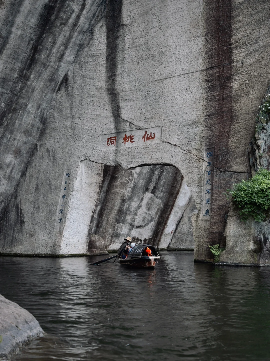 坐乌篷船观赏黑石壁景观,推荐阴天来这里更出片