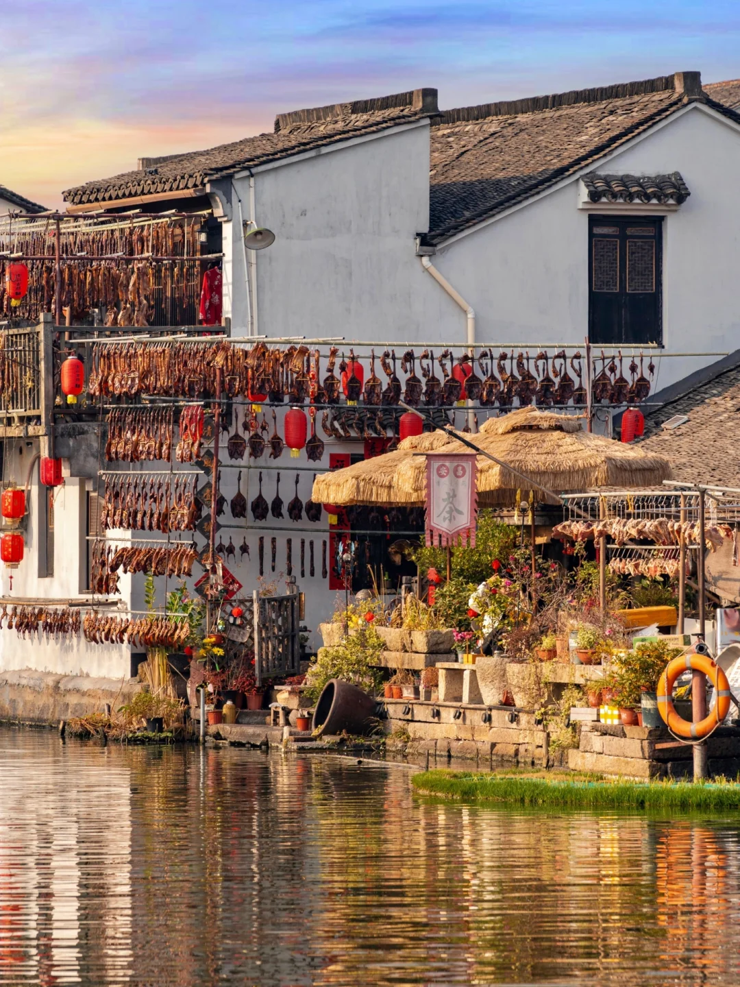 酱鸭腊肠熏鱼挂满河边,沿街小吃摊热腾腾,王老汉臭豆腐爱吃!