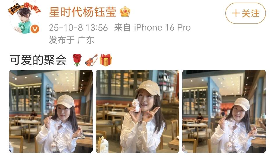 54岁杨钰莹晒聚会照,穿白色蕾丝衬衣超减龄!杨钰莹在社交平台分享了一组聚会照令人惊艳。照片中,她身穿一件白色蕾丝花边上衣搭配牛仔裤,头戴棒球帽,笑容甜美可爱,完全看不出五十几岁的年龄。不愧是90年代红遍大江南北的“甜歌皇后”啊!