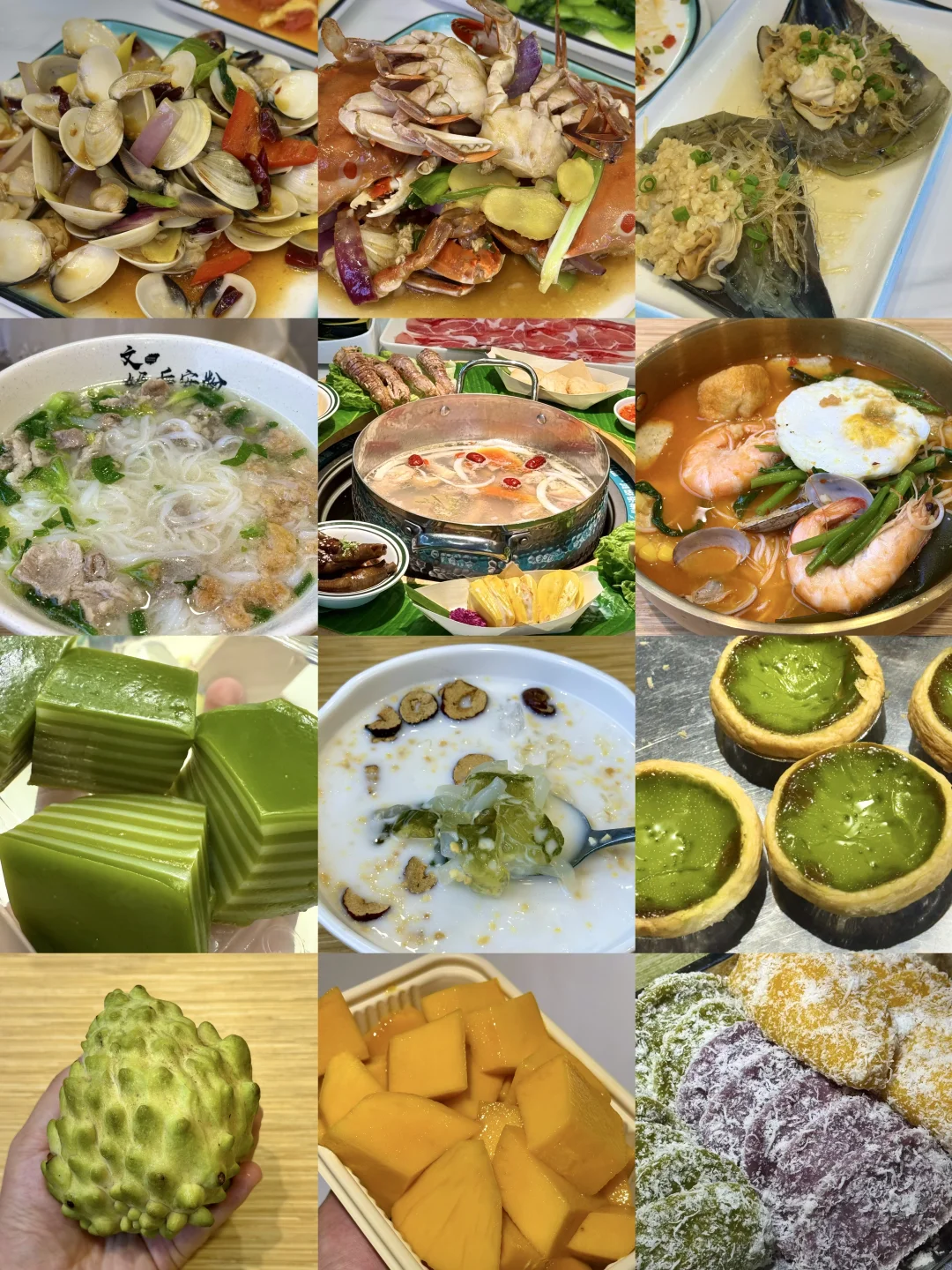 老爸茶、清补凉、椰子鸡、海南鸡饭、糟粕醋、椰子饭、后安粉、椰丝糯米糕、抱罗粉、海鲜、斑斓椰汁糕
