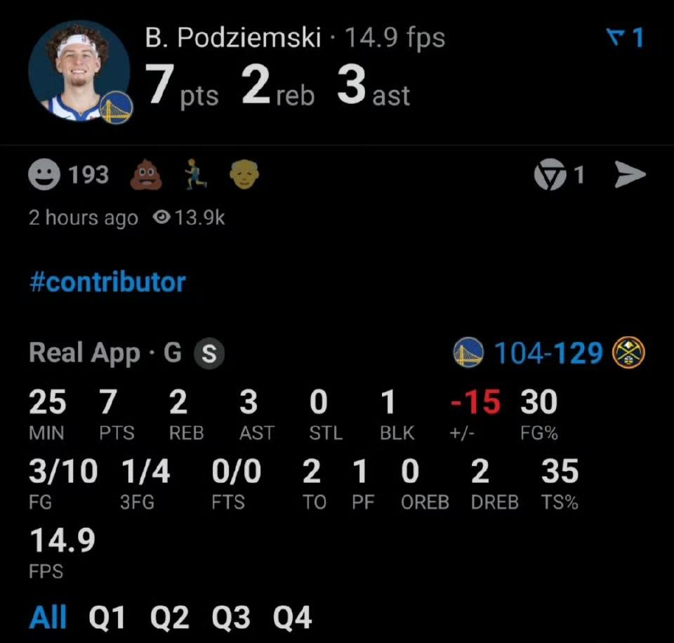 勇士三少21投仅7中! 勇士104-129不敌掘金,三位被寄予厚望的年轻球员同时低迷:波杰姆斯基10中3得7分,穆迪9中1仅2分,库明加10中3拿6分。这样的表现让人质疑他们能否成为勇士的未来。 波杰姆斯基球商高但天赋有限,过于依赖队友创造机会。当需要自主进攻时,缺乏稳定得分手段的问题就暴露无遗。 穆迪从希望之星沦为普通轮换,表现极不稳定。作为3D球员,防守尚可但进攻太依赖定点三分,缺乏自主创造得分能力。 库明加天赋最高却起伏最大。勇士今夏刚与他续约2年4850万美元,ESPN曾给这笔签约B+评级。但他的比赛专注度和战术执行力仍需提升。 三位年轻球员各有明显短板,表现稳定性不足。在库里等核心老去的背景下,他们的成长速度将决定勇士未来能否顺利过渡。目前来看,他们距离扛起球队大梁还有很长的路要走。进攻太依赖定点三分,缺乏自主创造得分能力。 库明加天赋最高却起伏最大。勇士今夏刚与他续约2年4850万美元,ESPN曾给这笔签约B+评级。但他的比赛专注度和战术执行力仍需提升。 三位年轻球员各有明显短板,表现稳定性不足。在库里等核心老去的背景下,他们的成长速度将决定勇士未来能否顺利过渡。目前来看,他们距离扛起球队大梁还有很长的路要走。