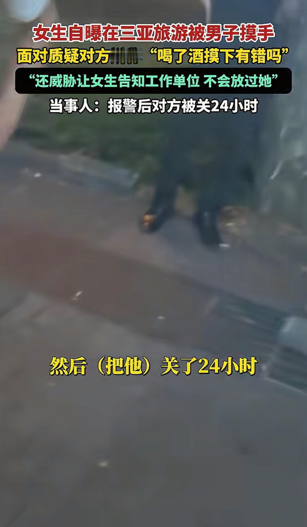 真是让人恶心啊。11月5日,一女生在海南三亚旅游的时候,迎面走来一陌生男子,故意摸女生的手。女生上前质问,男子十分硬气的说“喝酒了,摸一把不行?你还没有我女儿大,摸一下就说我性骚扰”。然后更是威胁女生说“不会放过她”。 长这么大,把耍流氓说的这么理所当然的第一次见。这么厉害,你咋不去摸老虎呢? 得亏有路人作证,最后警察也依法关了他24小时。这种人就该重罚,给他罚怕了,才会长记性。这事也提醒女生遇到这种事别硬刚,保护好自己最重要,搜集好证据,报警,让法律来收拾他。猥亵 女生 三亚