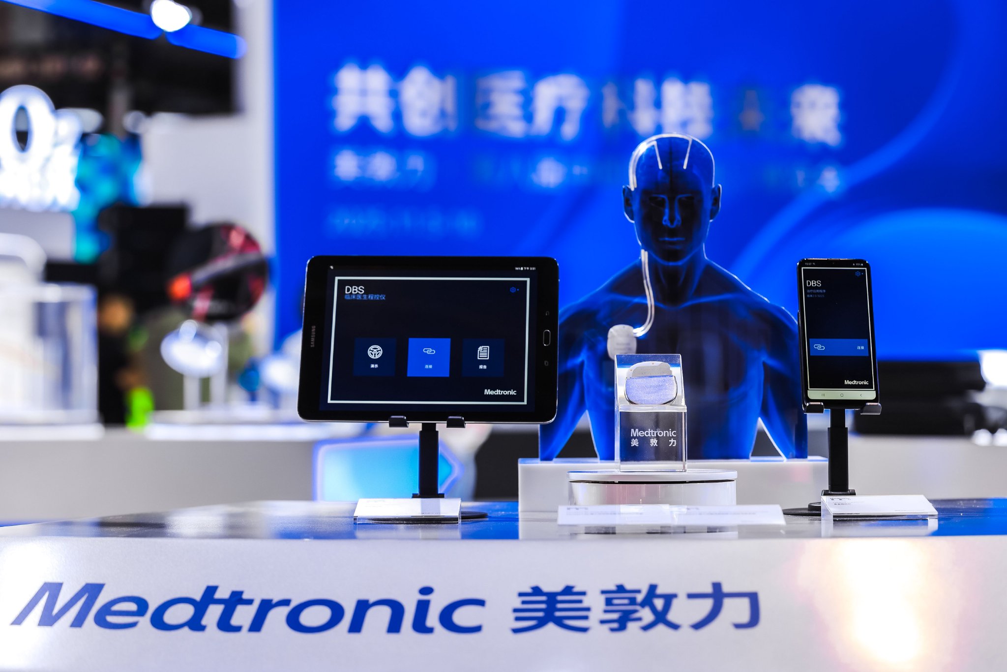 美敦力展台展出了集成人工智能和脑机接口技术的可充电、可感知闭环脑起搏器PerceptRC。工作人员介绍,该款起搏器实现了“读脑—释义—反馈—疗愈”的完整闭环治疗,医生在患者胸部皮下植入刺激器,通过植入大脑中的电极,发射电脉冲刺激脑深部的特定核团,进而达到改善患者症状和生活质量的目的。该脑起搏器已获批用于治疗帕金森病、特发性震颤、肌张力障碍和药物难治性癫痫。相较于传统脑起搏器的单向治疗,PerceptRC让治疗更贴合患者的病情变化和需求,实现个体化精准治疗。