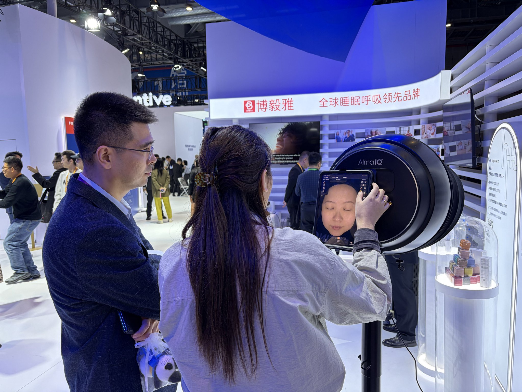 罗氏、阿斯利康、强生、波士顿科学、西门子医疗等跨国企业都在与AI企业合作推进多个项目。本届进博会,AI赋能的创新药械、科研助手、护肤装备、医学图像处理平台、诊断设备数智化产品聚集,为“最卷展区”带来了超高人气。