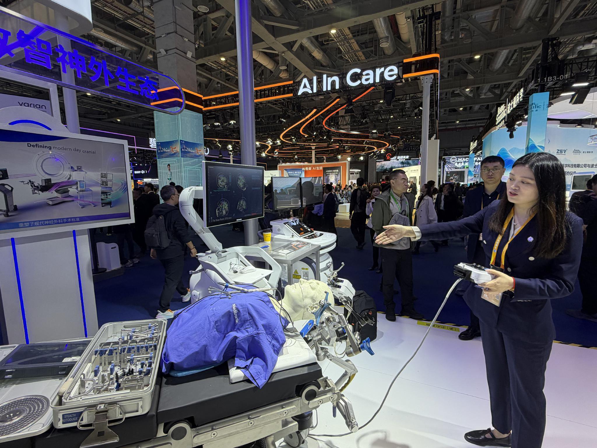 本届进博会上,“AI+医疗”领域创新产品和技术备受瞩目,在AI赋能之下,冷冰冰的医疗器械也有了“智慧大脑”。