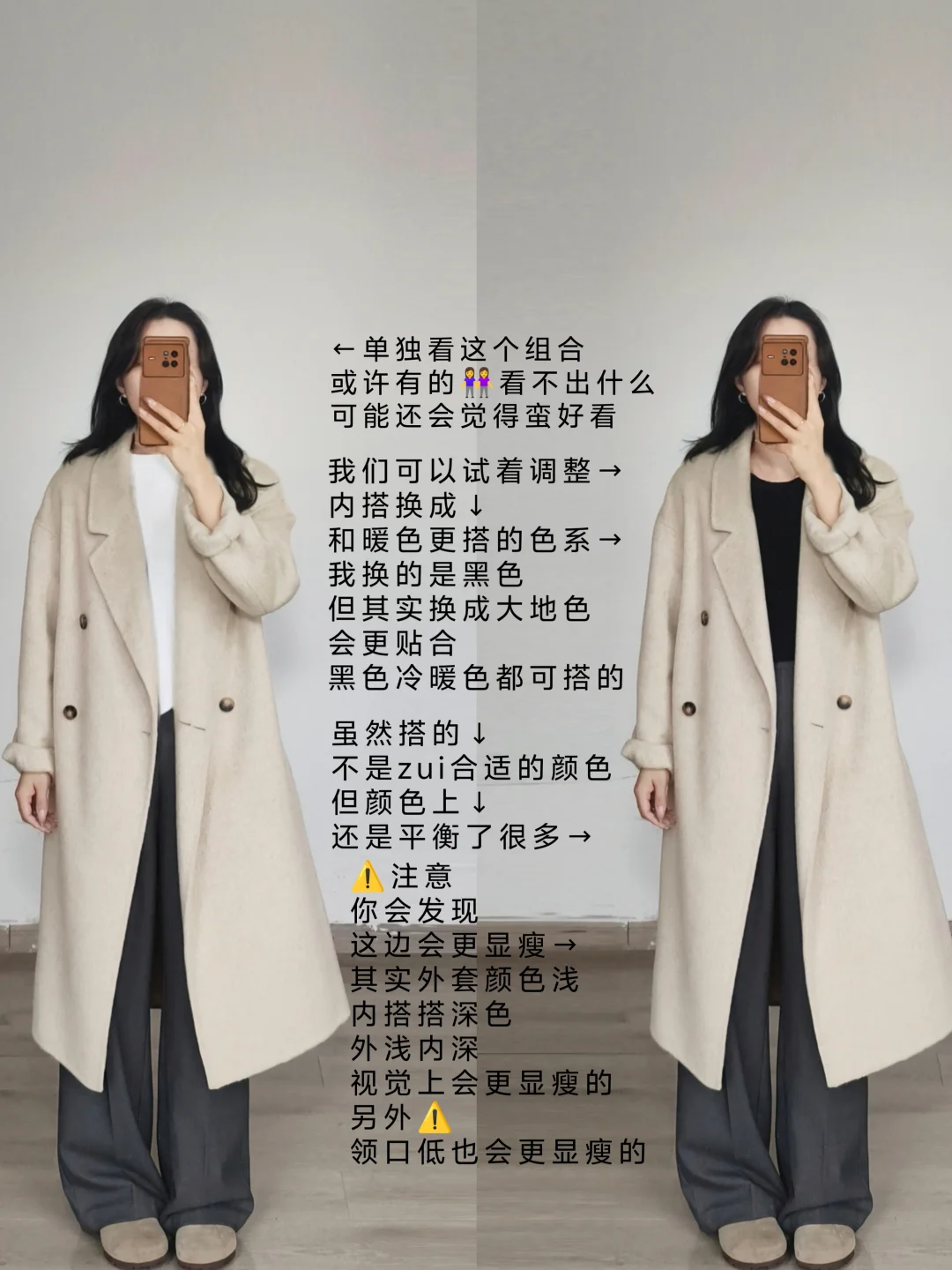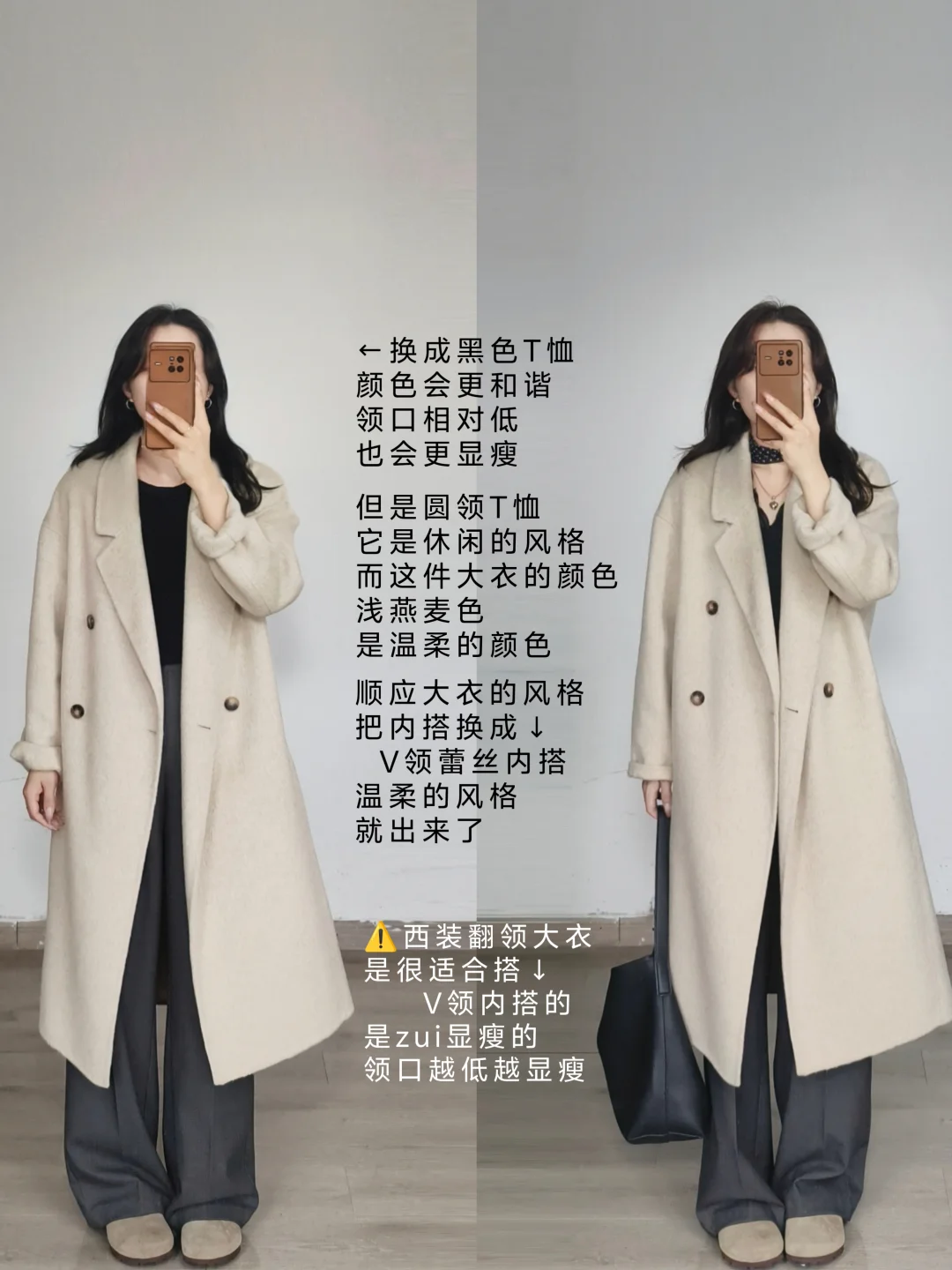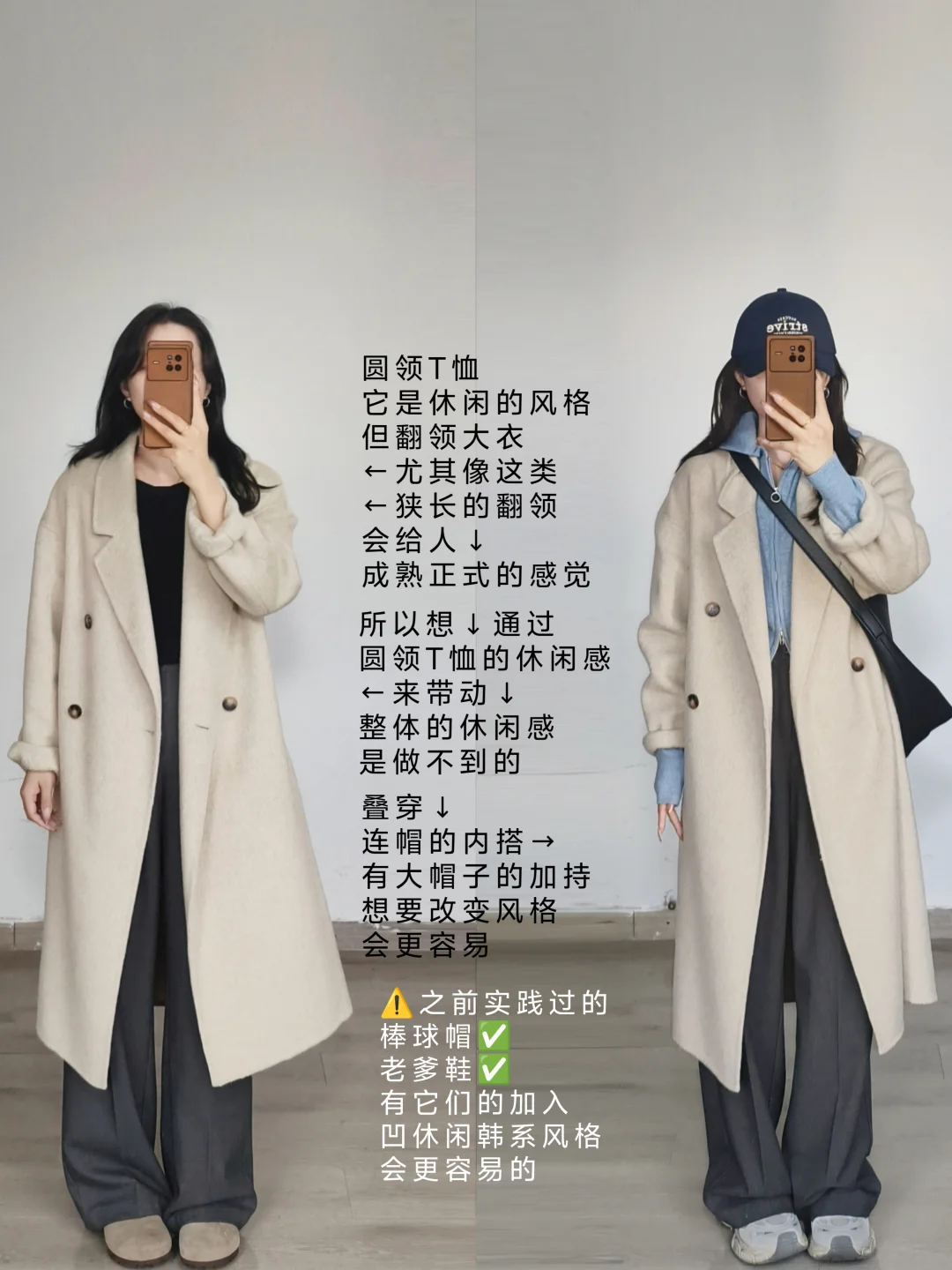 浅色系大衣搭宽松的裤子不是应该很温柔的吗