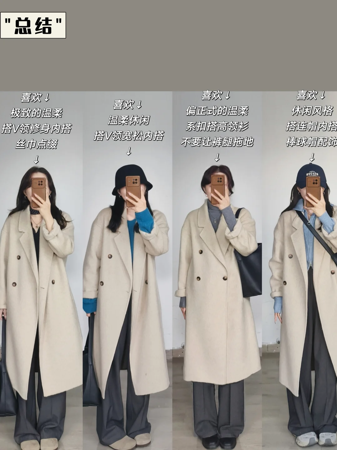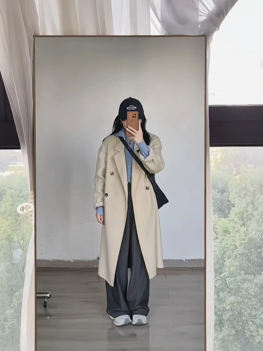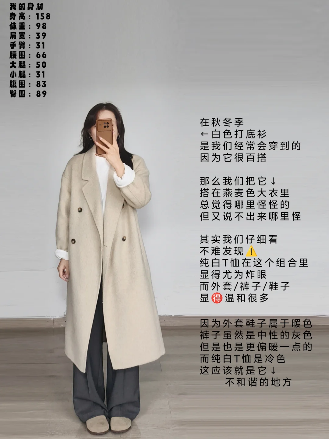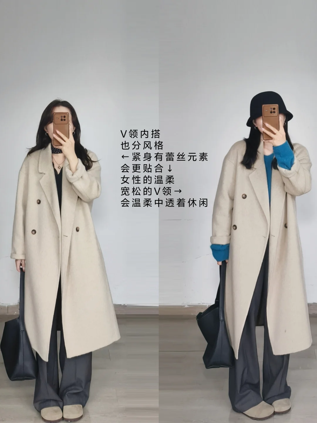 浅色系大衣搭宽松的裤子不是应该很温柔的吗