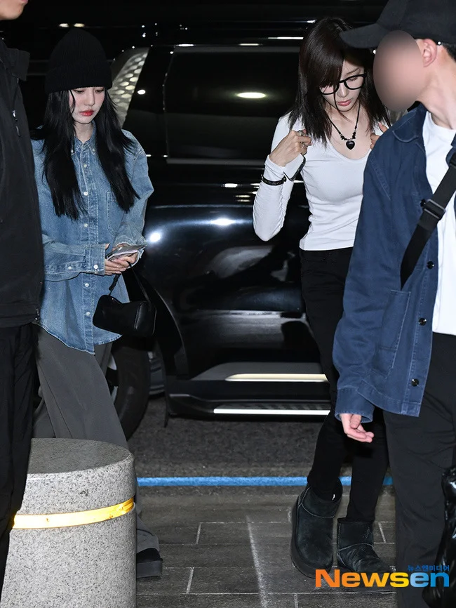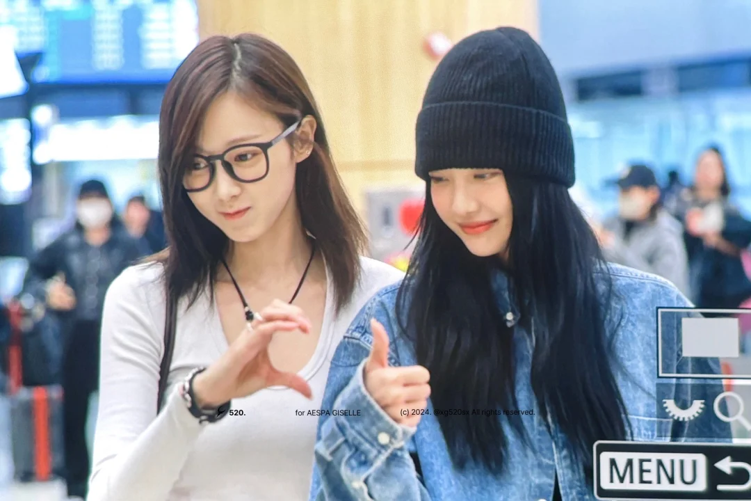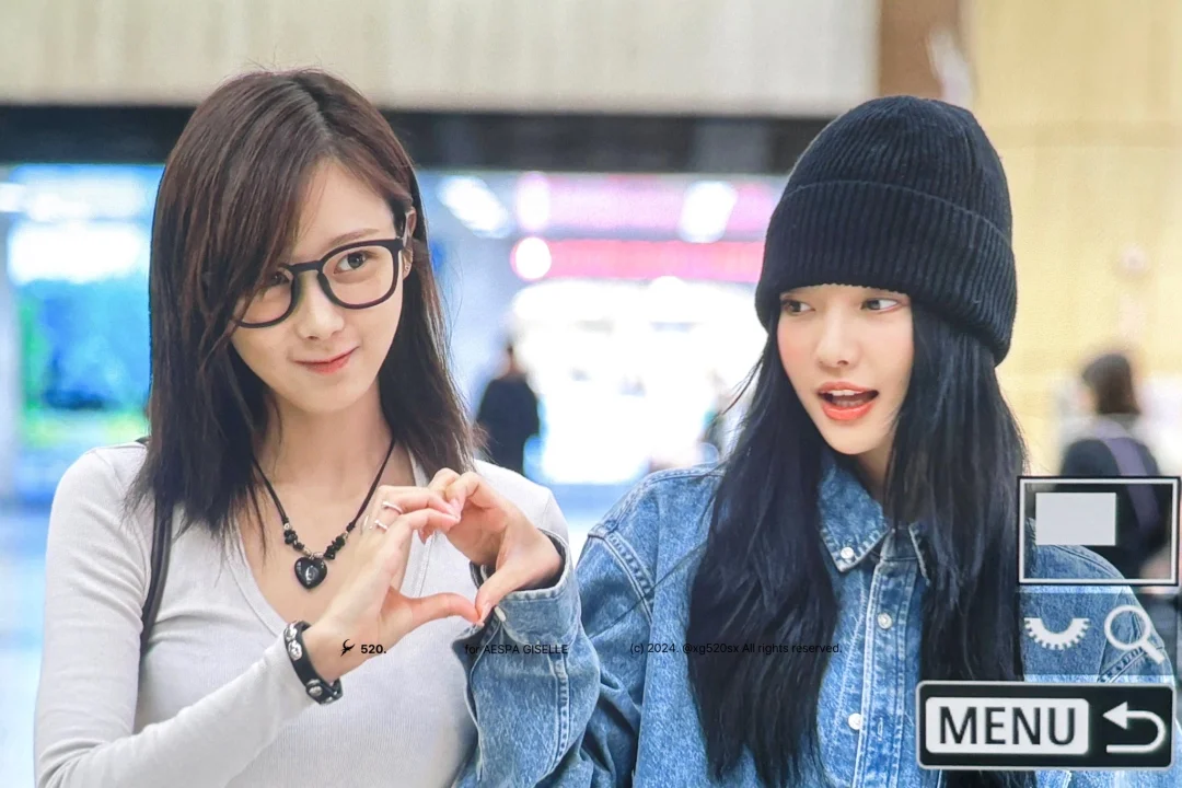 宁宁 Giselle今日机场私服!时髦的小姐俩! 图片来源于newsen