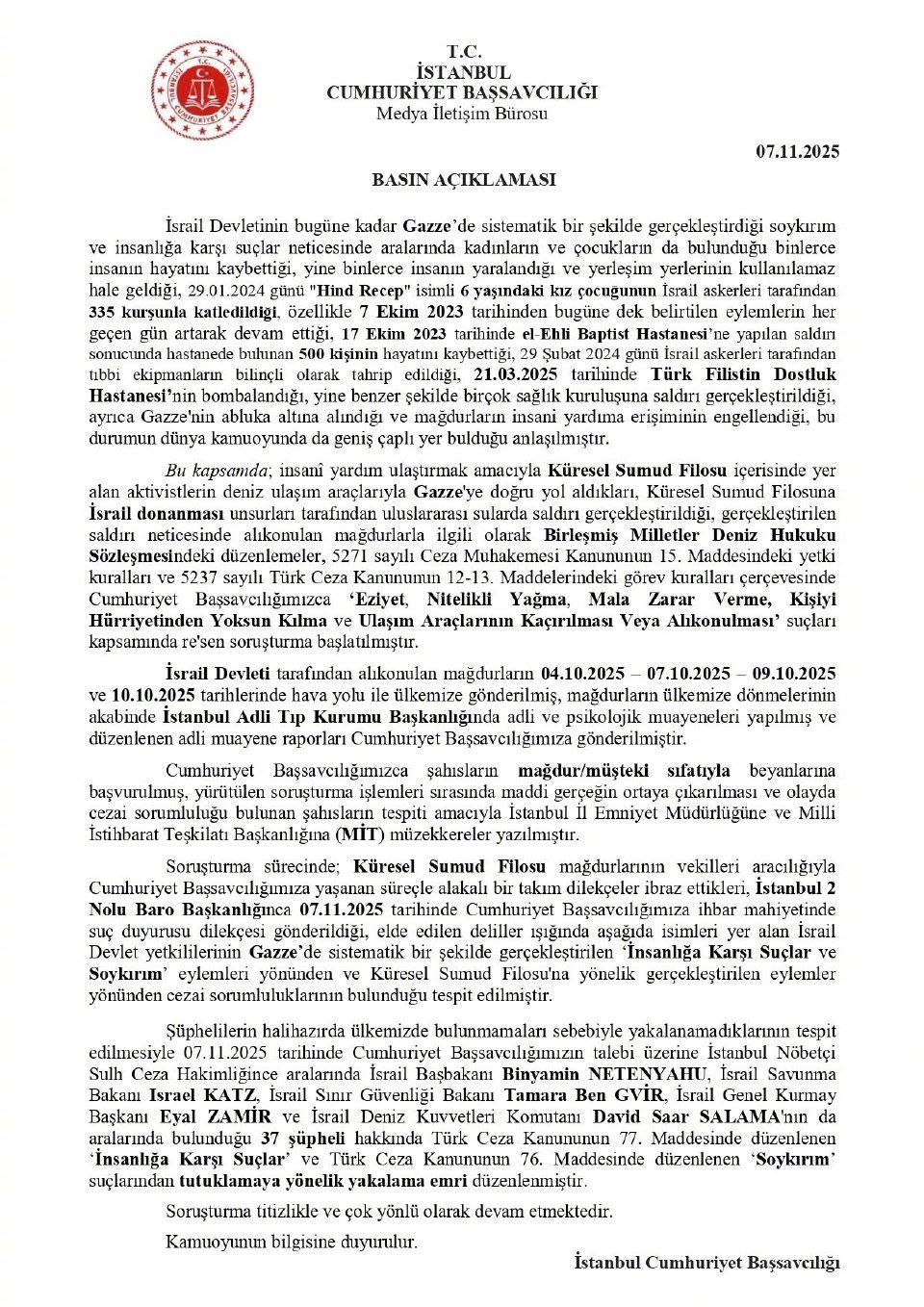 伊斯坦布尔首席检察官办公室以“种族灭绝”罪对内塔尼亚胡发出逮捕令。​逮捕令是当
