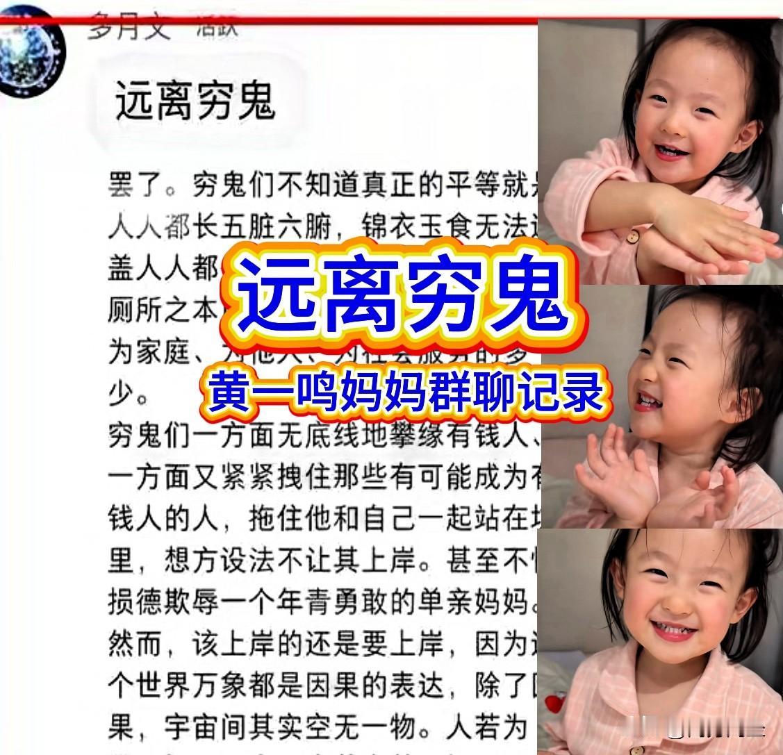 穷人与穷鬼,“远离穷鬼”疑似黄一鸣妈妈的群聊记录 网络上流出一段聊天截图,疑似是