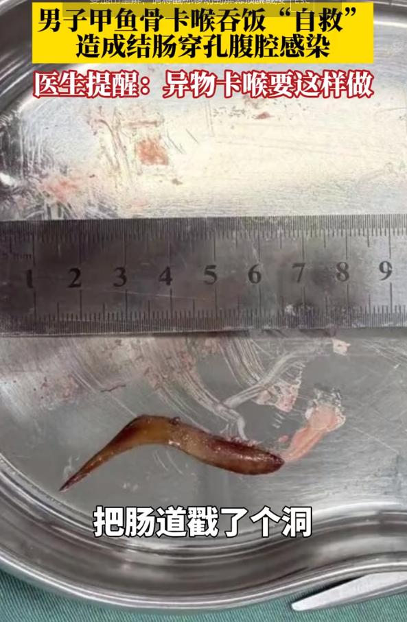 “悲剧还是发生了!”11月7日报道,浙江杭州,一男子吃甲鱼时,一根骨头卡在了喉咙里,他急忙吃了几口米饭将骨头压下去,不料,一个星期后,男子的肚子一天比一天痛,去医院检查发现肠子竟被骨头穿透,很可能危及生命!网友:胆子真大。[得意] 浙江的陈先生,吃甲鱼时不慎卡了根小骨头,他按老办法吞了几口米饭,感觉没事了,谁知一周后腹部剧痛,送医才发现那根骨头已刺穿肠道,最后只能手术切除受损肠段才脱险。 吃饭时被骨头卡住喉咙,很多人会下意识地猛扒几口饭,想把异物“压”下去,这个看似省事的动作,背后其实藏着不小的风险。 “吞饭压刺”的危险在于强行吞咽时,饭团可能让鱼刺或骨头扎得更深,如果异物从喉咙滑进消化道,随着肠道蠕动,尖锐处可能刺破肠壁,导致穿孔或腹膜炎,严重时甚至危及生命。 遇到鱼刺卡喉,先保持镇定,可以低头弯腰,轻轻咳嗽,看能否利用气流把表浅的刺冲出来,如果咳不出,就应立即停止进食饮水,减少吞咽动作,尽快去医院耳鼻喉科。 医生在喉镜帮助下,能清晰定位并安全取出异物,整个过程通常很快,也比自己硬吞安全得多。 有些人觉得为根小刺上医院太麻烦,但对比陈先生的经历,一开始怕麻烦,最后却挨一刀、住院治疗,哪个更费时费力一目了然。 细小的鸡骨头、甲鱼骨、鱼刺尤其要当心,它们卡在喉咙时可能只是轻微不适,但进入肠道后就成了“隐形刀片”。 看了这个强行吞刺导致感染的新闻,网友们坐不住了,纷纷发表自己的看法。 "我的天,看完再也不敢吞饭压鱼刺了,原来后果这么严重!" "我也是浙江的,好像听说过这个事,没想到是吞甲鱼骨头搞的,以后吃甲鱼可得小心了。" "老一辈都这么教,说喝醋吞饭管用,看来土方法真不能信,还得相信科学。" "上个月刚被鱼刺卡过,还好直接去医院了,医生用镊子一分钟就取出来了,挂号加处理才几十块钱,真不麻烦。" "科普太重要了!建议学校多教教这种生活急救知识,比刷题实用多了。" "我小时候被卡过,我奶奶让我吞了一大口韭菜,说是能缠住刺带下去,现在想想后怕。" "甲鱼骨头确实硬,吃的时候必须慢,为省几分钟挨一刀太不值了。" "评论里说喝醋的别误导人了,醋根本软化不了骨头,反而伤喉咙。" "这种事新闻报过好多次了,怎么还有人用土方法?侥幸心理要不得啊。" "希望陈先生早日康复,也算给大家提了个醒,感谢分享。" "我们这边社区医院就能取鱼刺,不用非去大医院排队,方便又便宜。" 你有没有听说过或者用过哪些看似有用、实则危险的“生活小妙招”?在评论区分享一下,帮大家一起避坑吧! 信源:北京日报