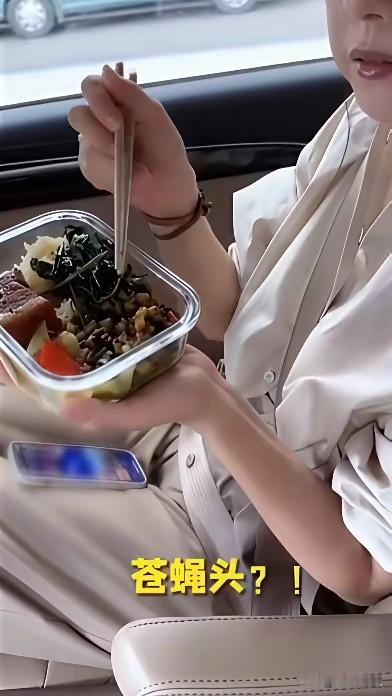 高圆圆吃“苍蝇头”? 女神向大家介绍她从家里带的盒饭, 一边吃的津津有味,一边介