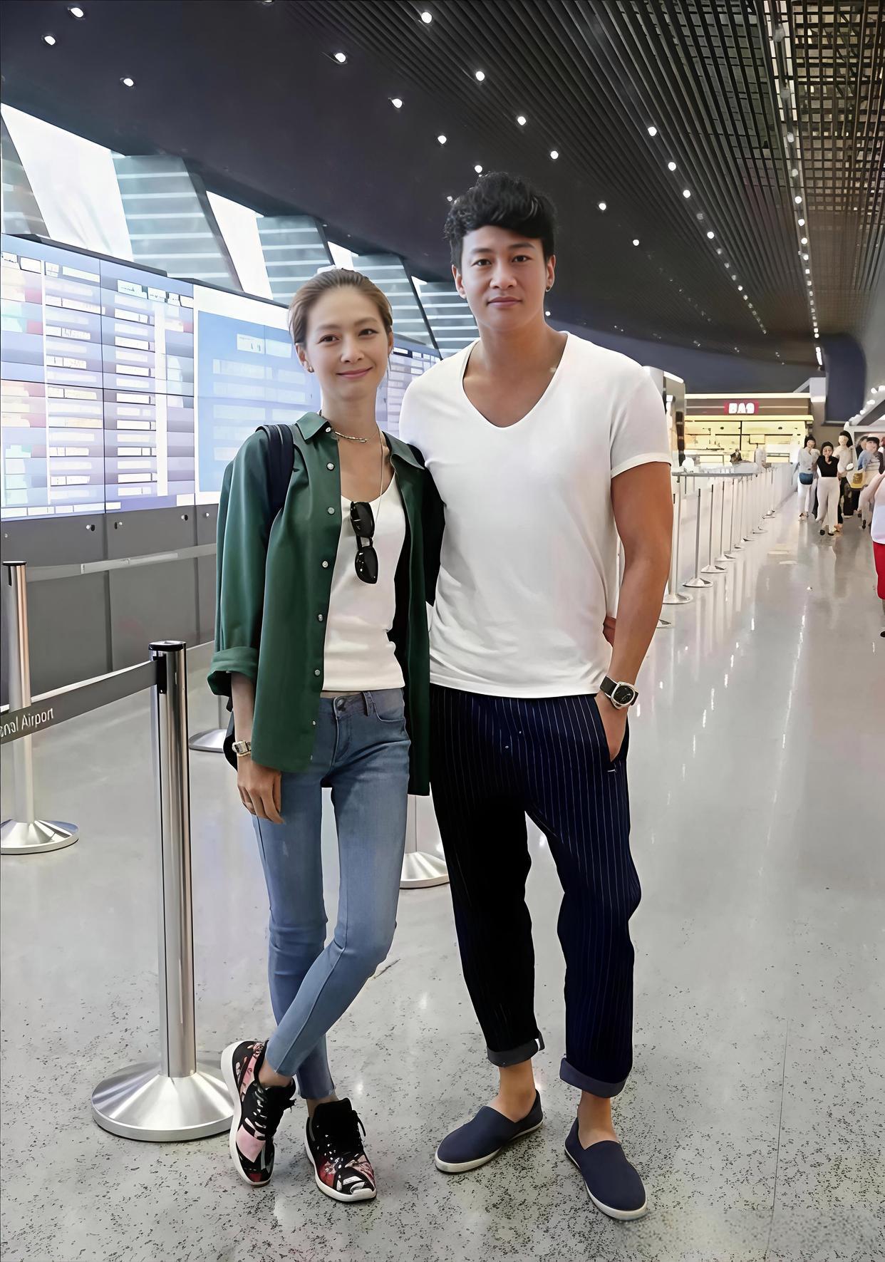 何润东和他的老婆在机场的合影,不得不说真是郎才女貌啊[赞]
