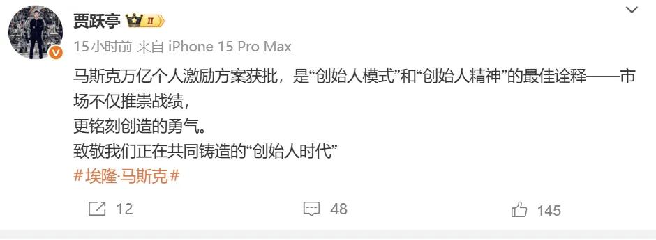 马斯克获得亿万美元薪酬,最兴奋的却是贾跃亭贾老板。难道他也想东施效颦,要求FF公司给他加薪?
